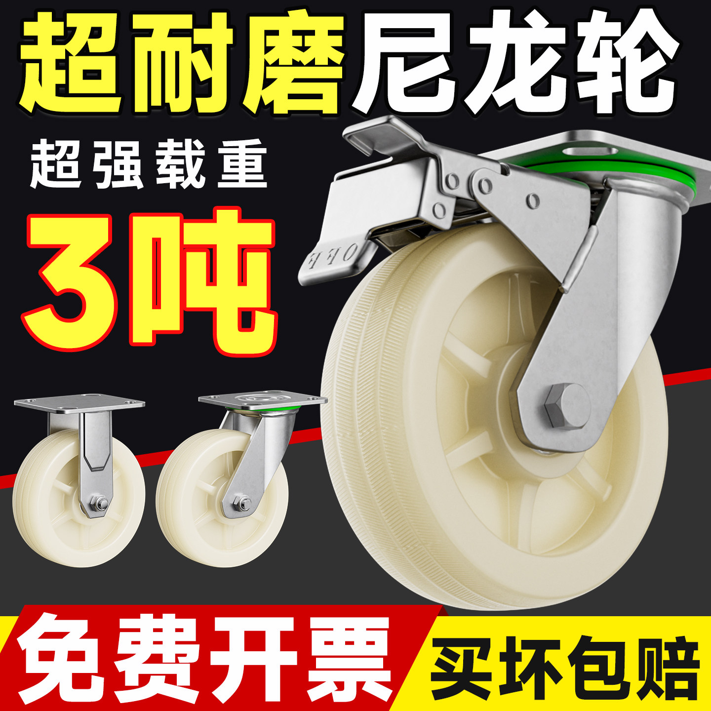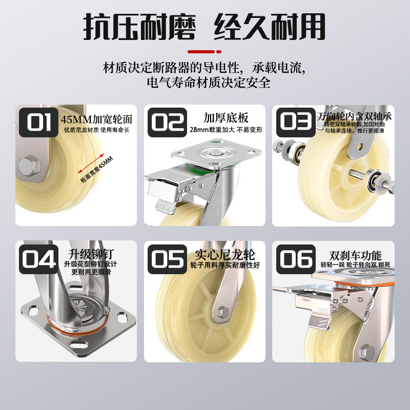 万向轮轮子尼龙轮定转向工业重型小推车板车拉车脚轮4568承重轱辘