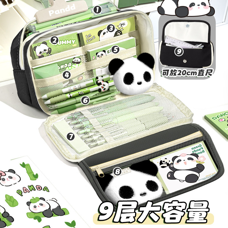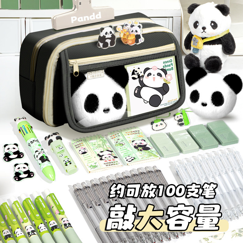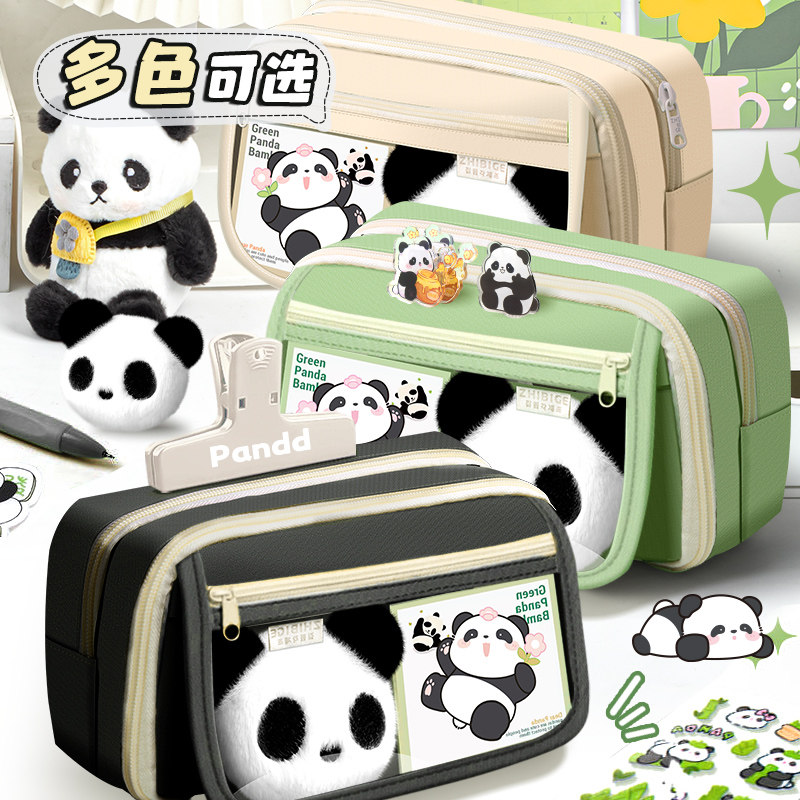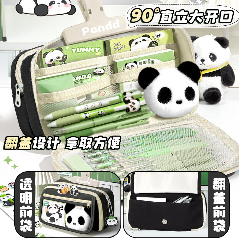 大容量熊猫笔袋高颜值DIY文具盒女孩ins风简约笔袋2025新款初中女生专用的多功能文具袋套装男孩小学生铅笔盒
