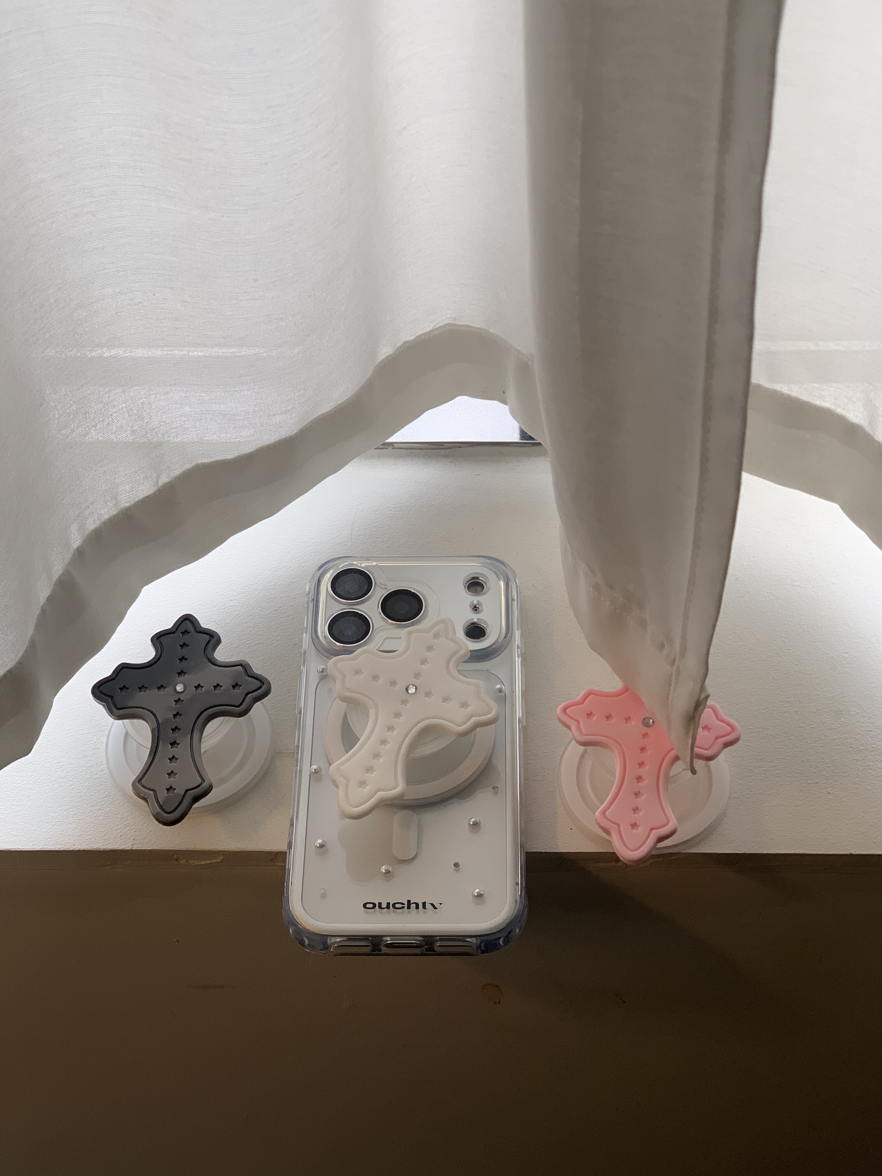 ouchtv原创设计巴洛克风镶钻十字架磁吸磨砂底座支架手机支架