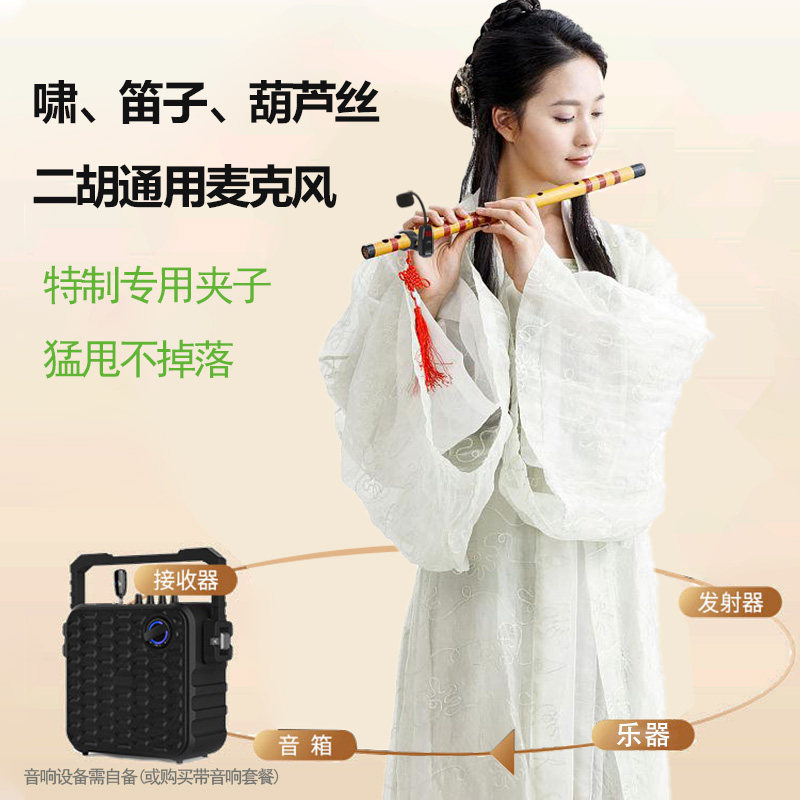 笛子无线麦克风长竹笛洞箫二胡葫芦丝乐器专用拾音器户外演出扩音