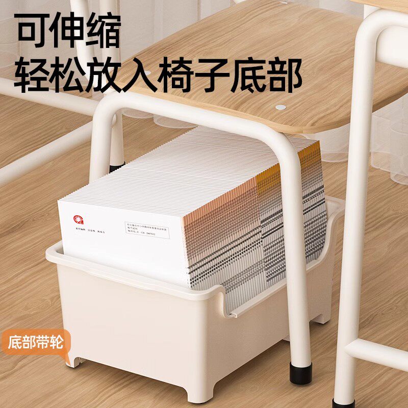 知远可伸缩书箱学生书本收纳箱初中学校桌边书架高中生桌下放书带轮可移动教室用课桌旁置物架神器立书袋挂袋