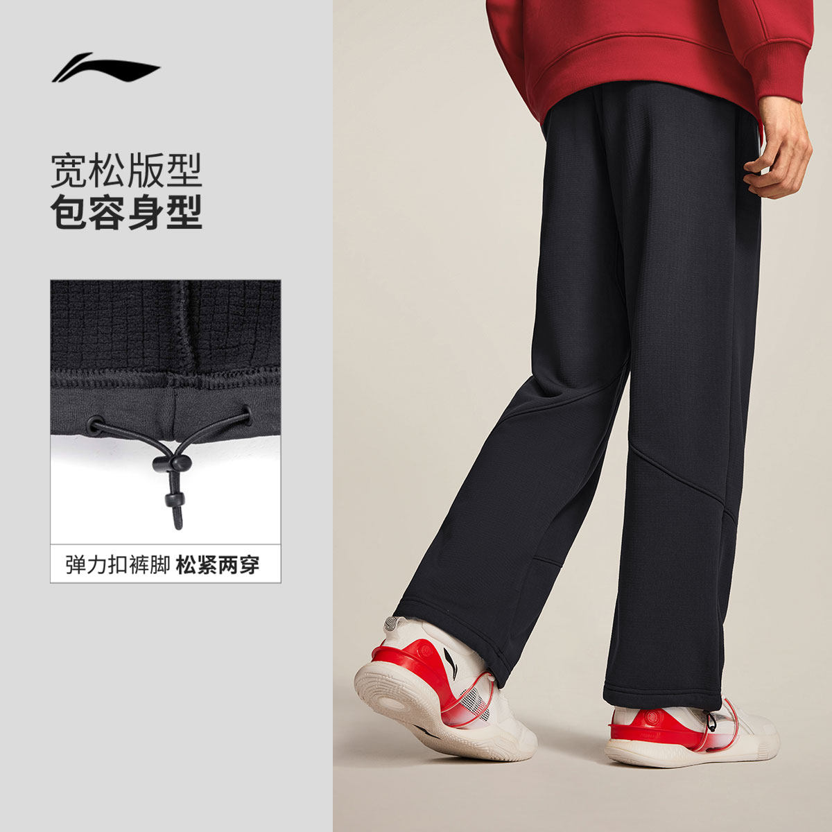李宁杨瀚森篮球系列运动长裤男新款宽松春季针织直筒运动裤男裤