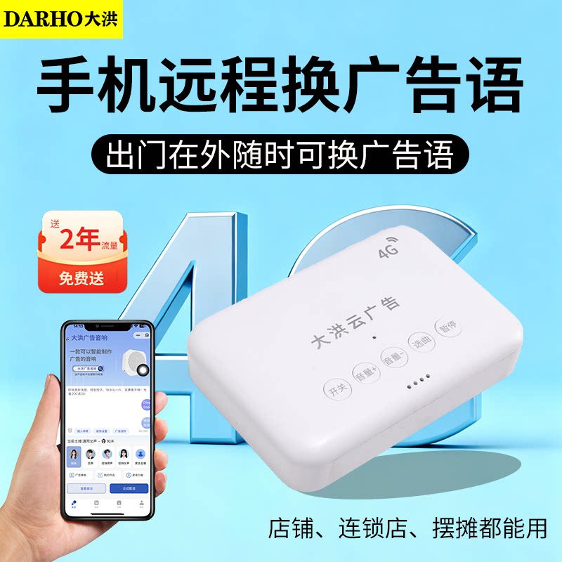 大洪4G广告盒连锁店无线远程换语音店铺录音循环播放器扩音器