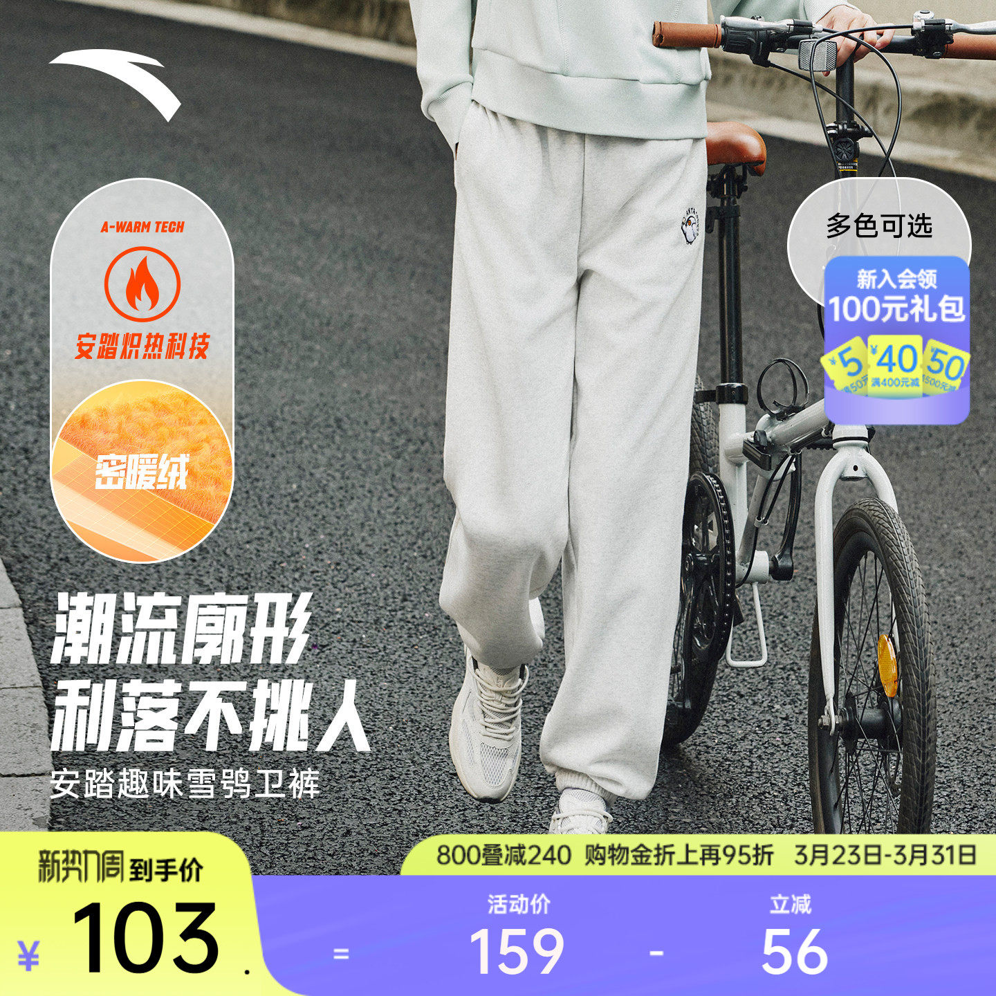 安踏雪鸮卫裤丨加绒保暖运动束脚裤女冬季针织宽松休闲百搭卫裤