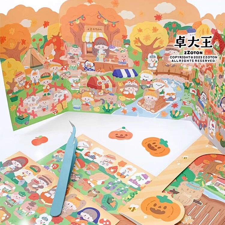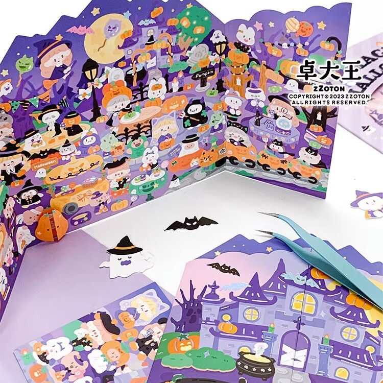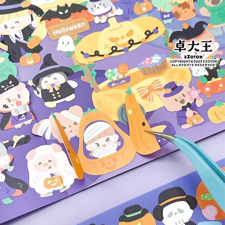 卓大王阿卓秋日万圣节场景贴纸魔法DIY咕卡造景贴画立体手帐贴纸