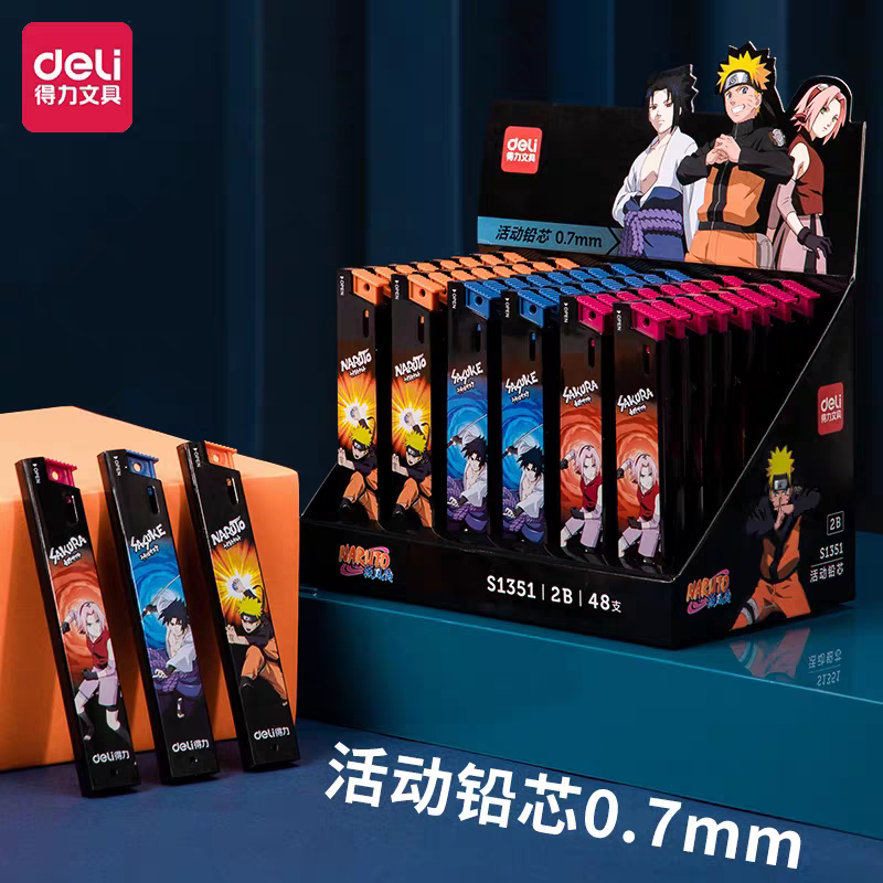 得力火影忍者铅芯铅笔芯0.5mm或0.7mm自动2B按动活动不易断芯高颜值批发小学生专用2比三年级卡通儿童可爱