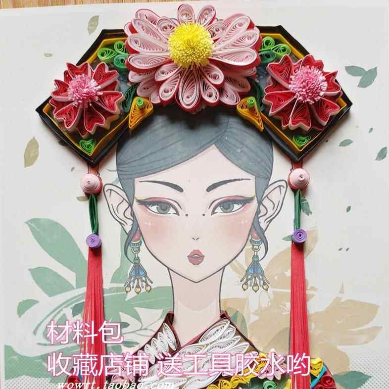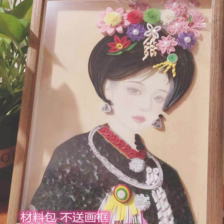 衍纸少数民族服饰折纸手工纸学生手工作业中国风线稿材料包套装