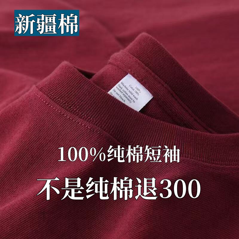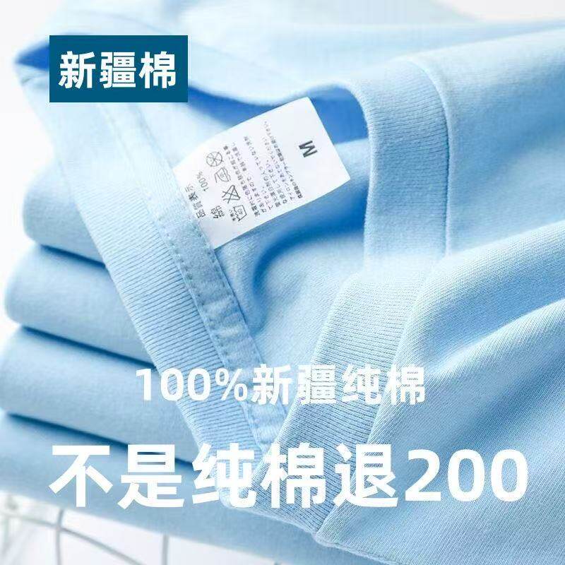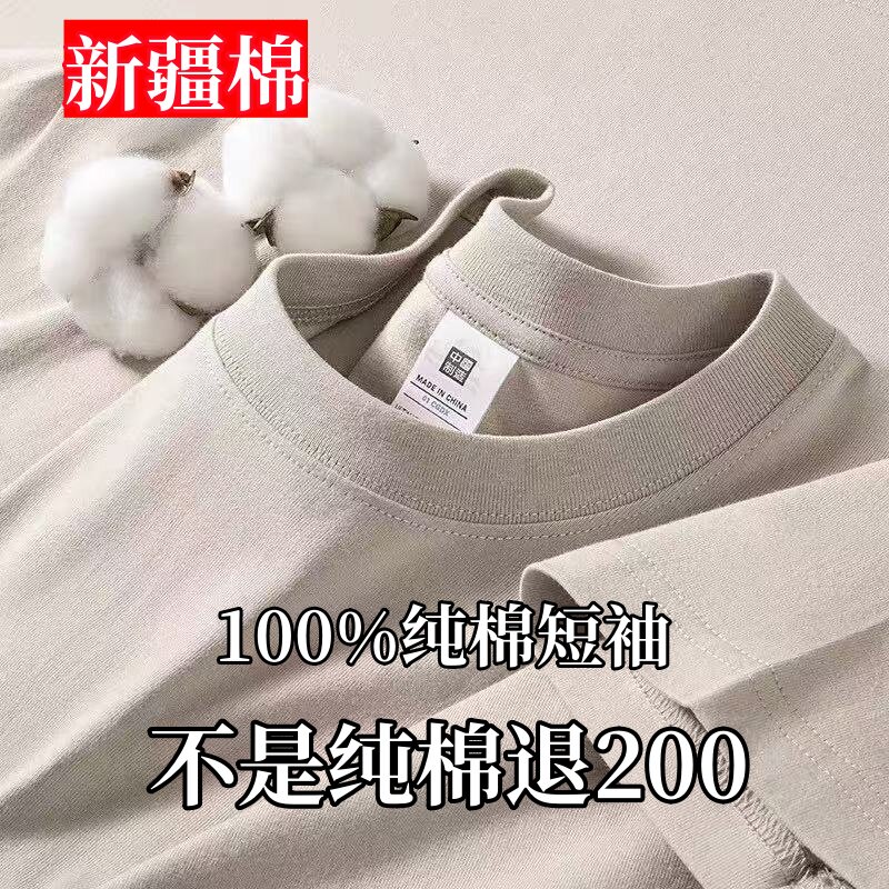 新疆棉200G重磅100%纯棉短袖t恤男女款夏季宽松百搭半袖大码体恤