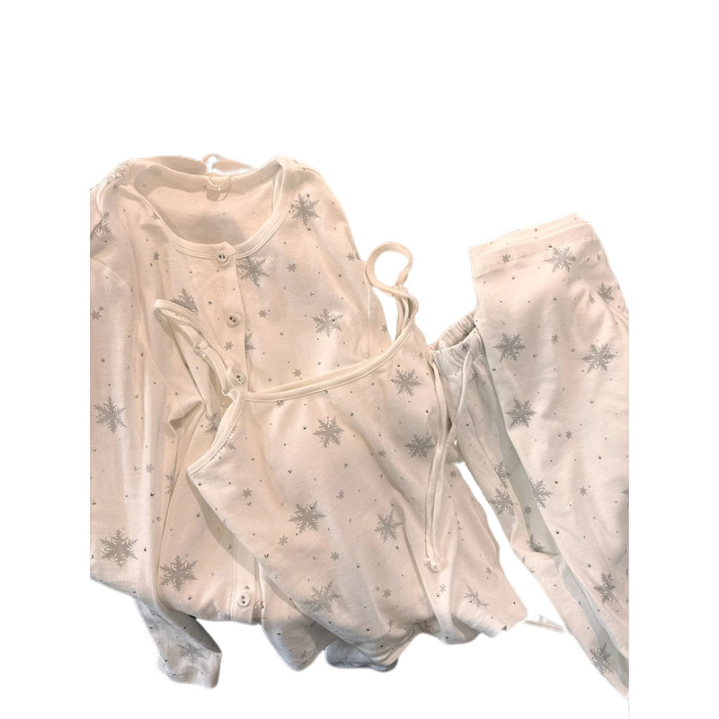 2026新款高级感雪花吊睡衣女款带胸垫长袖三件套夏天可外穿家居服