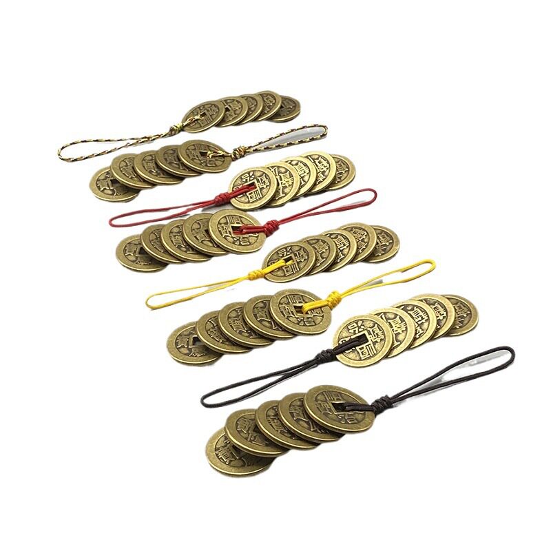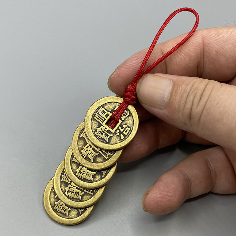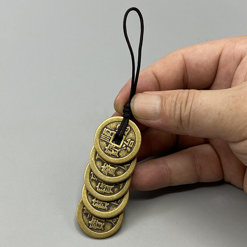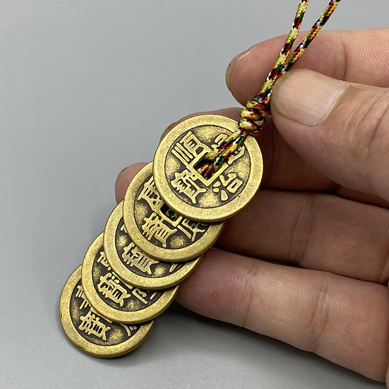 纯铜五帝钱吊坠复古铜钱压门槛卧室楼梯厨房门对门随身钥匙扣挂件