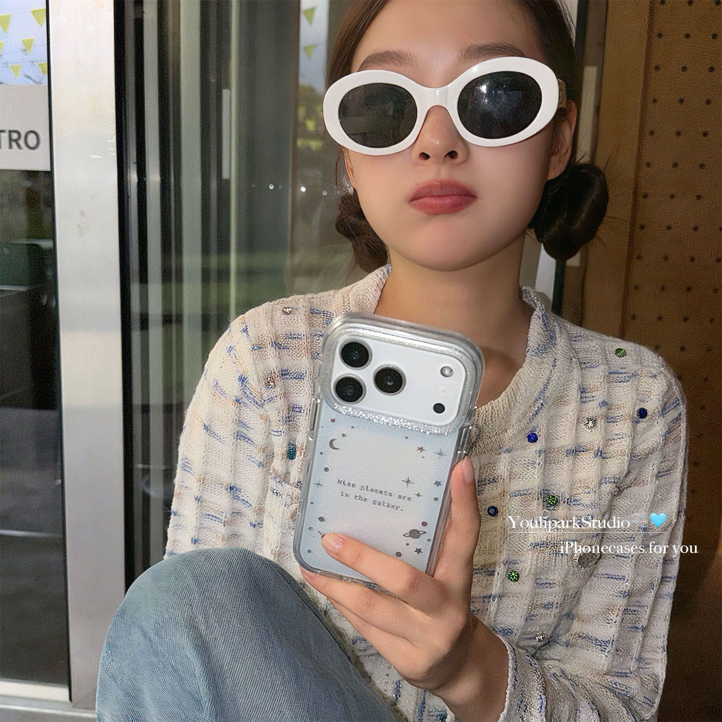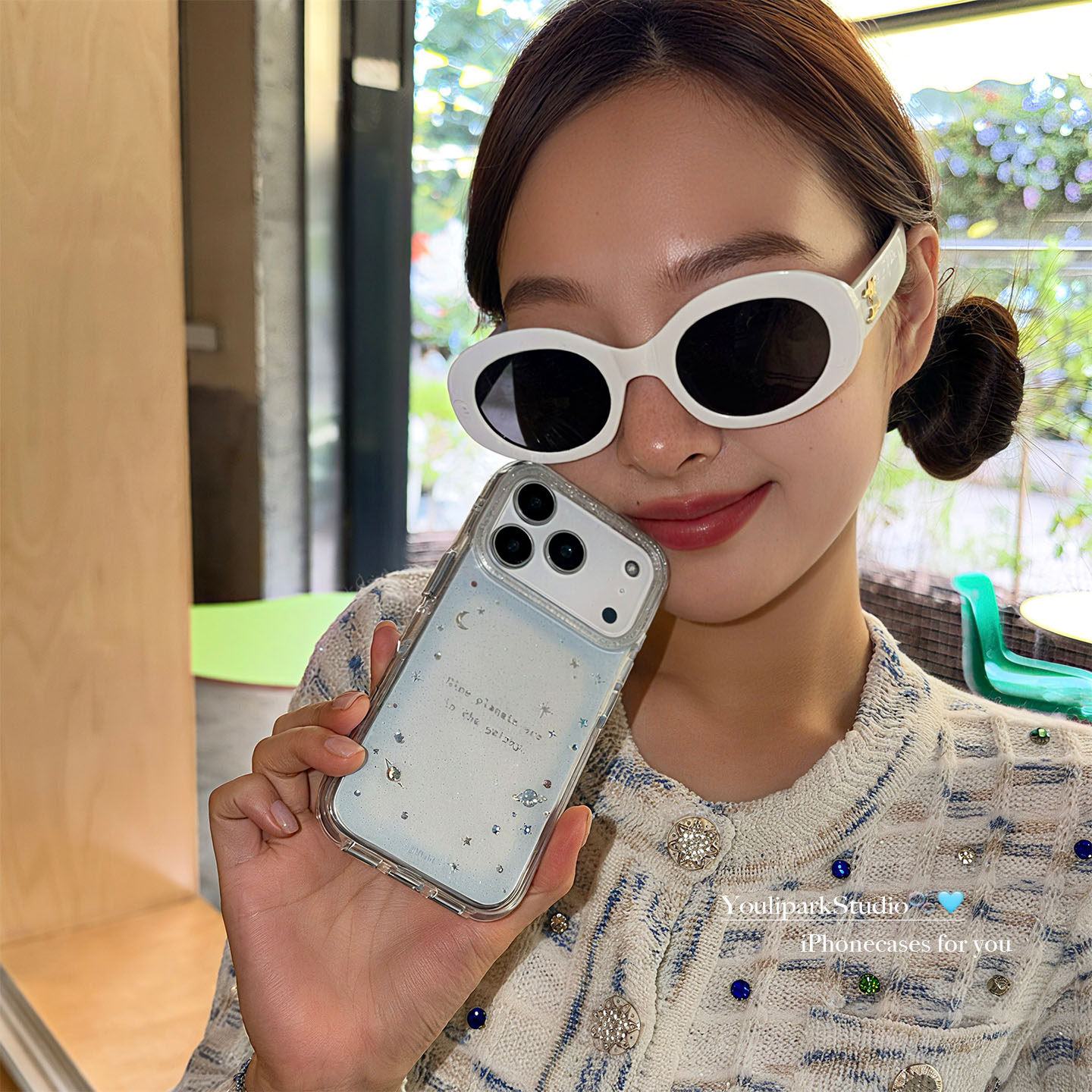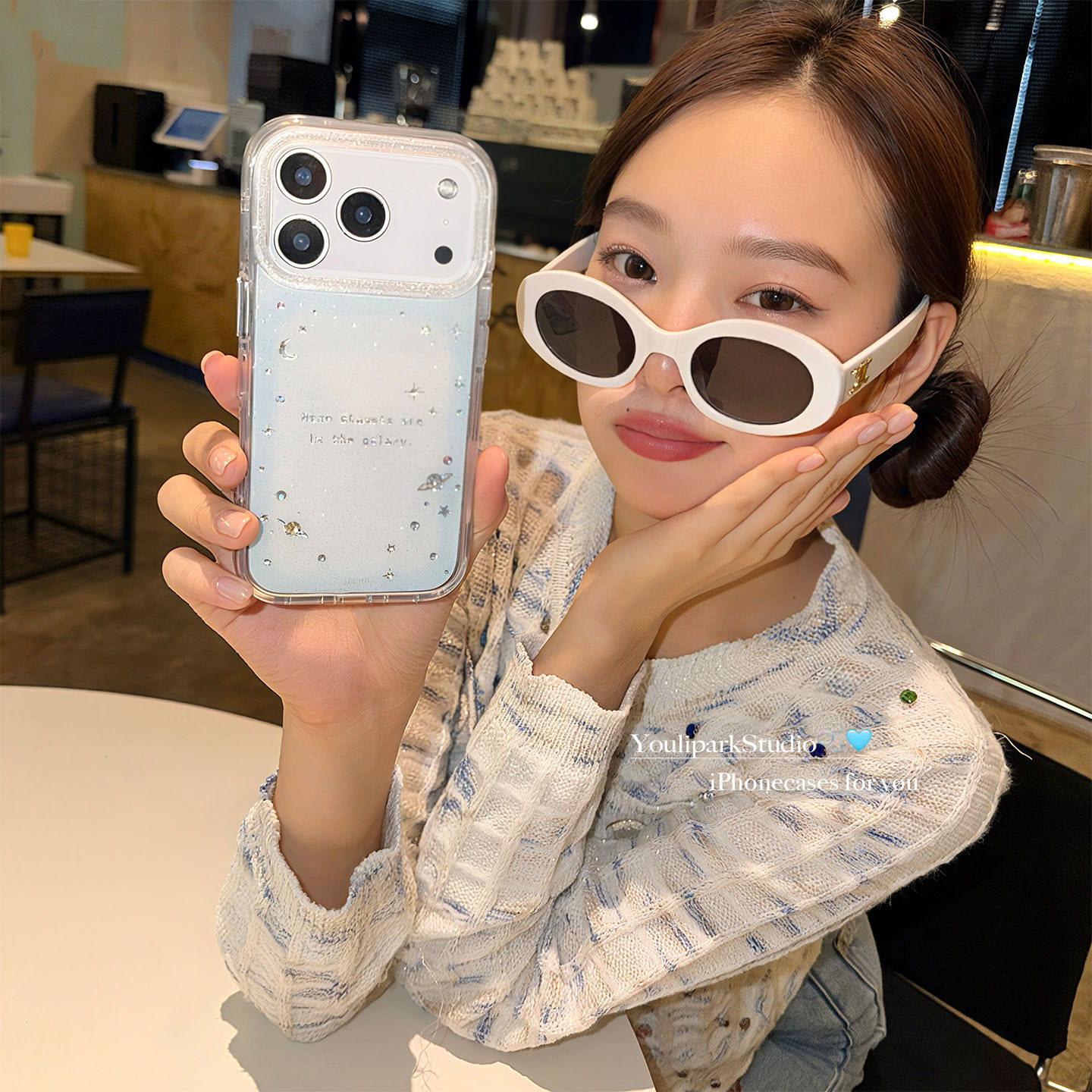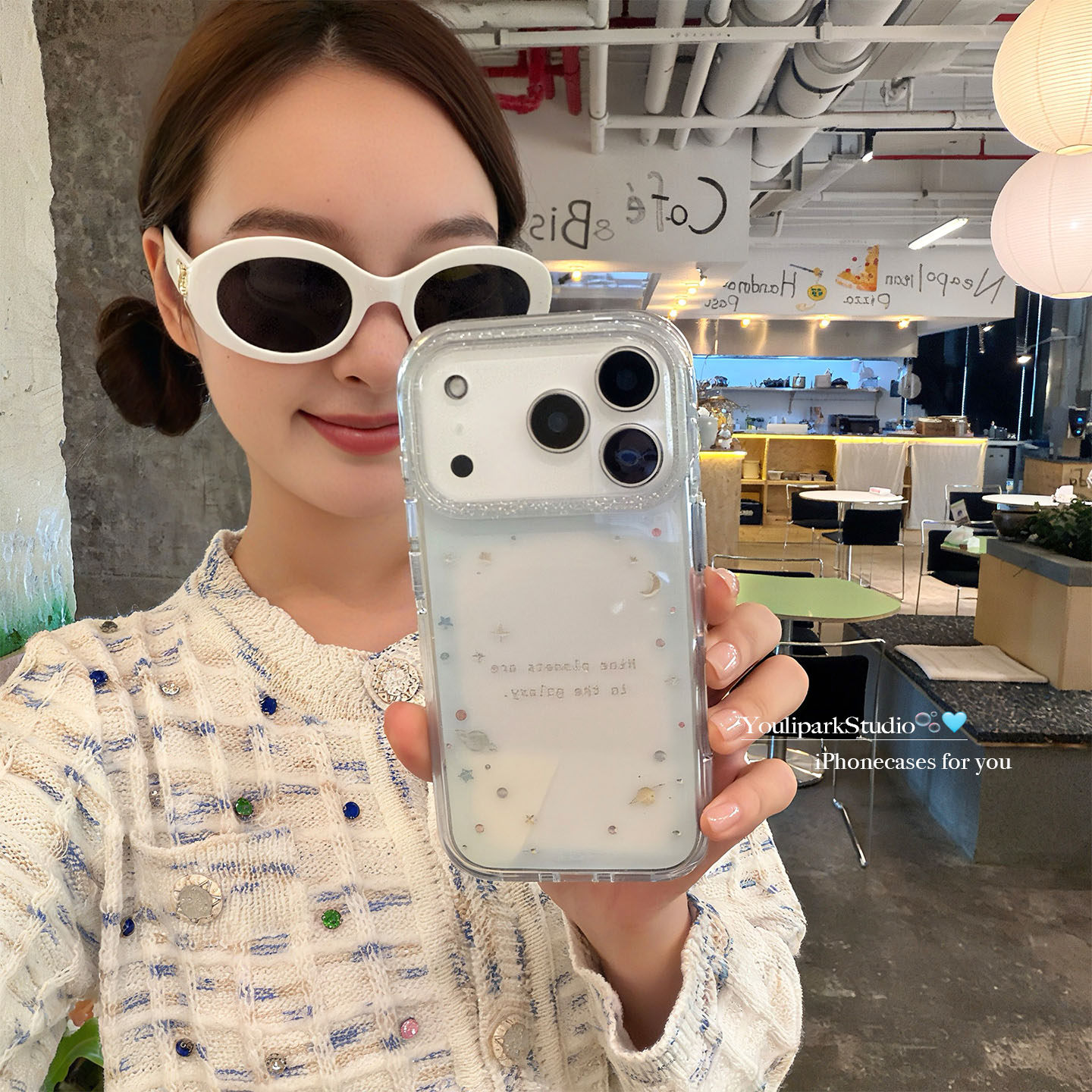 由里公园ins少女心浪漫梦幻闪粉透蓝星球17适用17pro苹果17ProMax手机壳iPhone16全包14新款16Promax保护套13