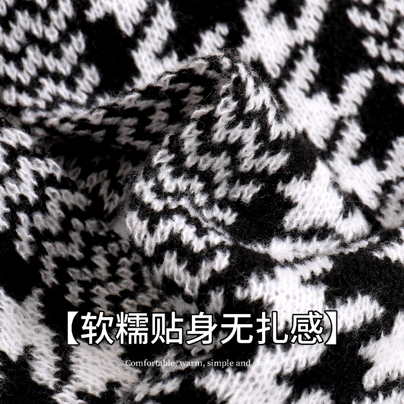 雪花双面针织围巾女秋冬季韩系氛围感加厚保暖高级感围脖复古披肩