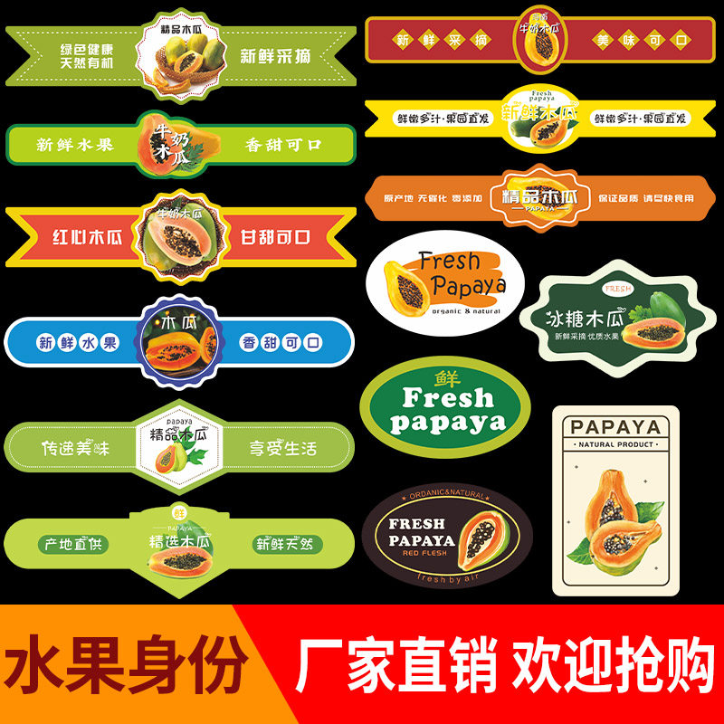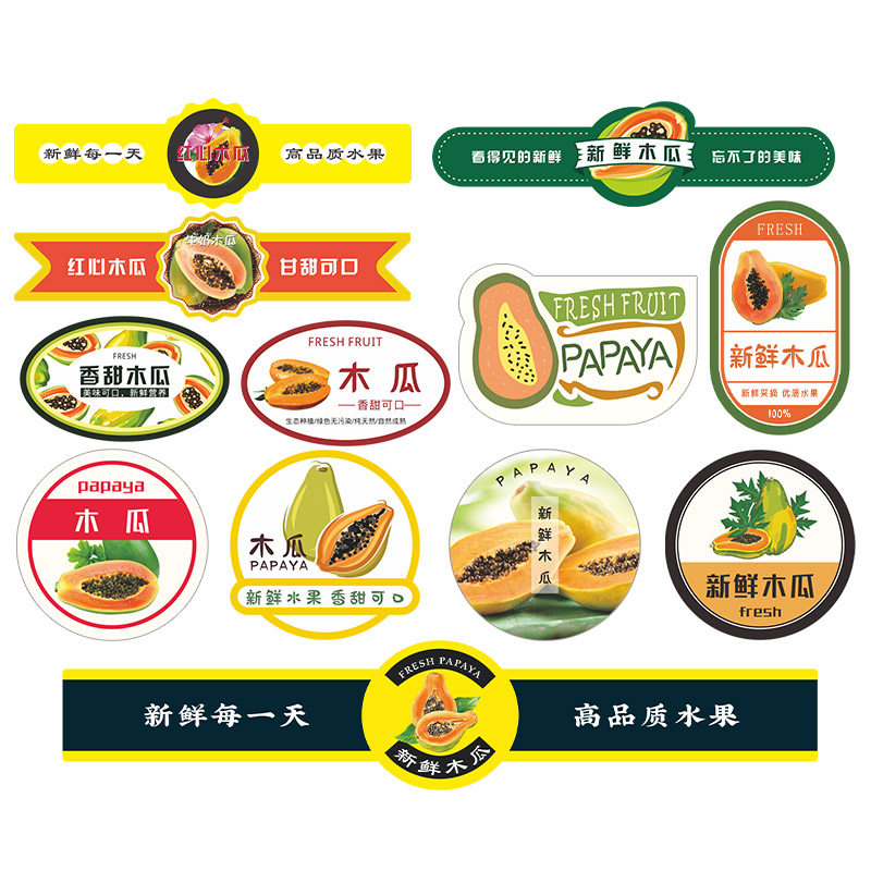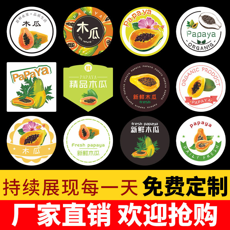 新款木瓜标签贴纸宣城陆河曹州白河桐柏不干胶包装水果商标贴定制