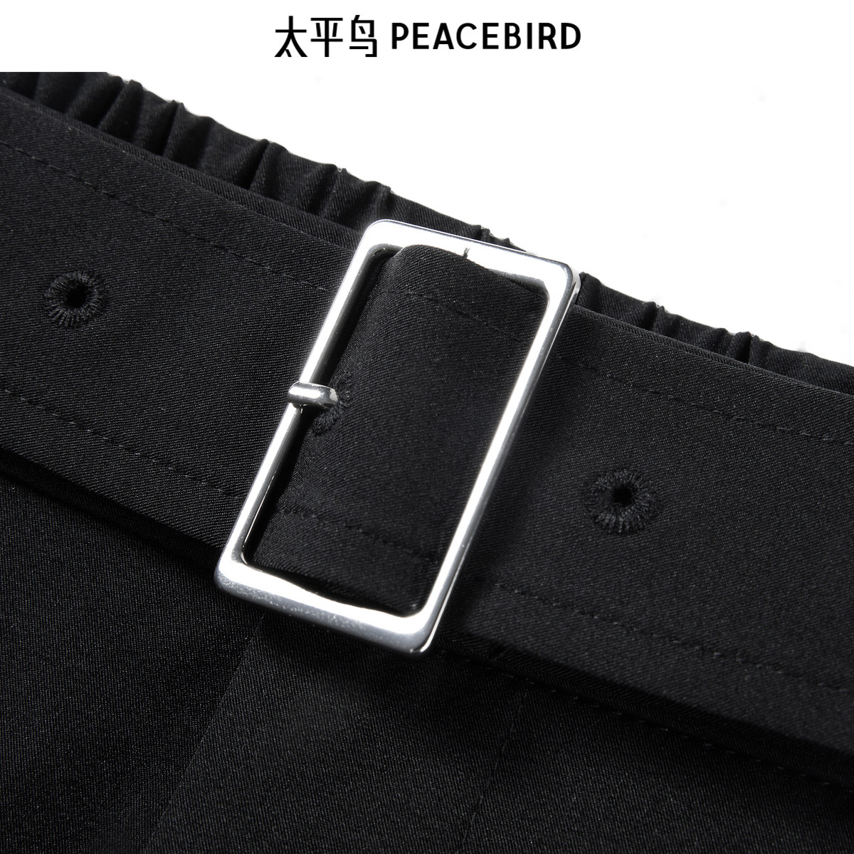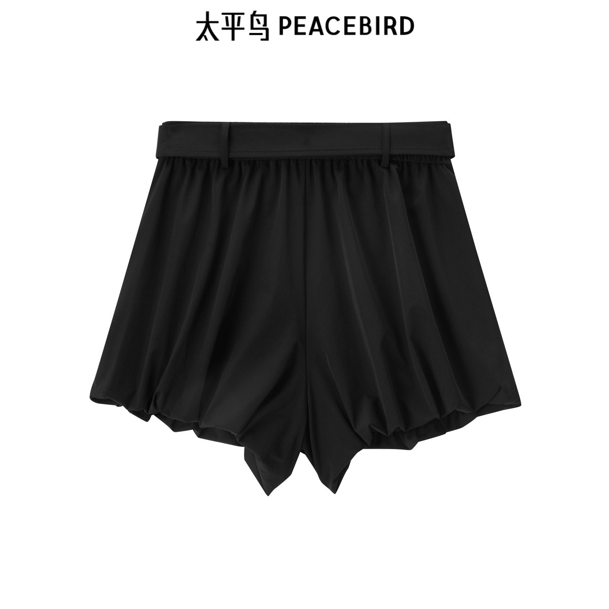 太平鸟高腰黑色短裤2026年春季时尚附带腰带阔腿直筒休闲中短裤女