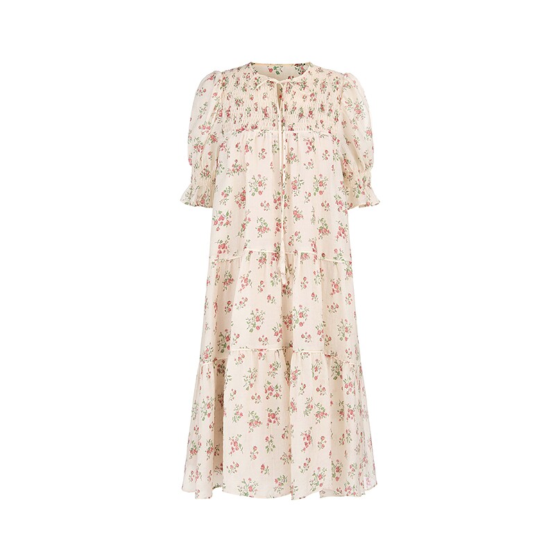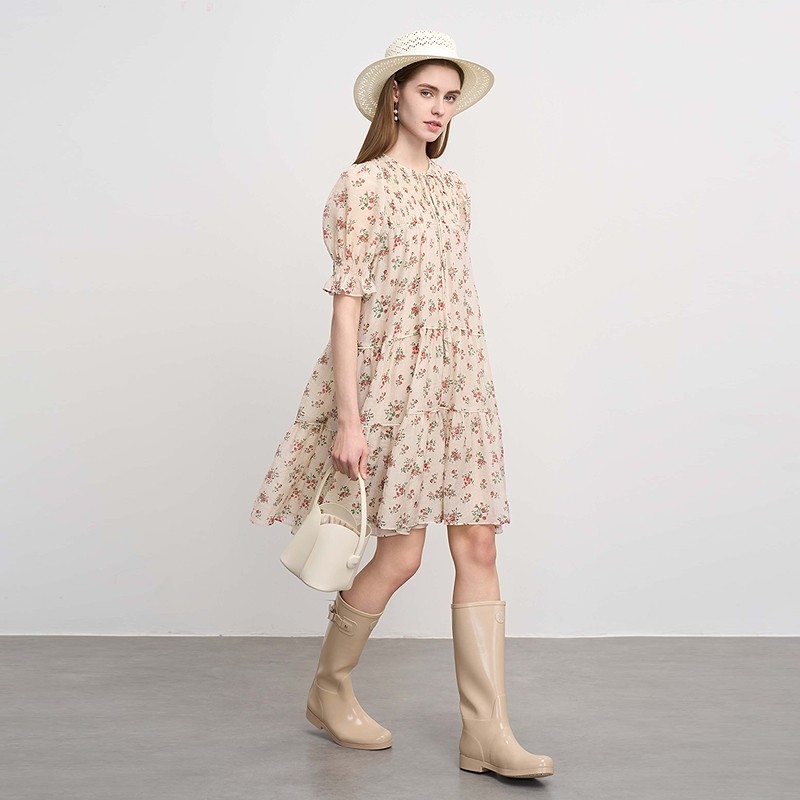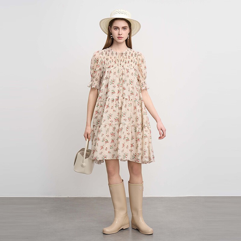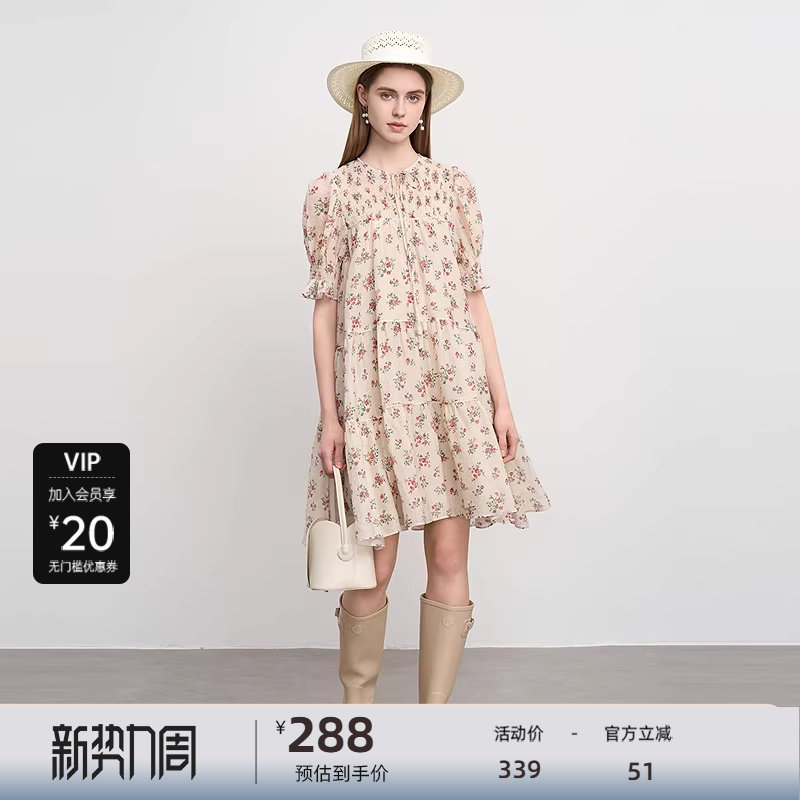 sdeer圣迪奥25年新品女装系带圆领碎花吊带两件套连衣裙S252Z1205