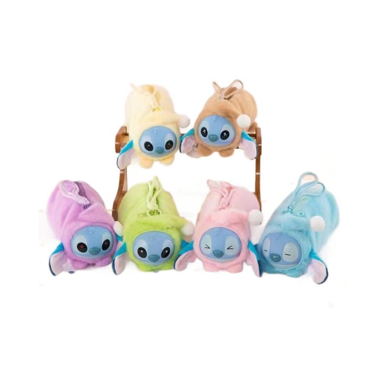 跨境新款史迪哭哇笔袋毛绒玩具蓝色迪奇潮玩化妆袋毛绒笔袋批