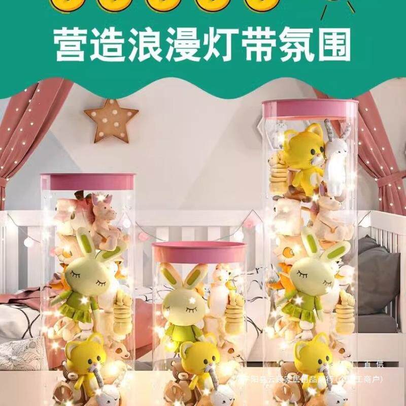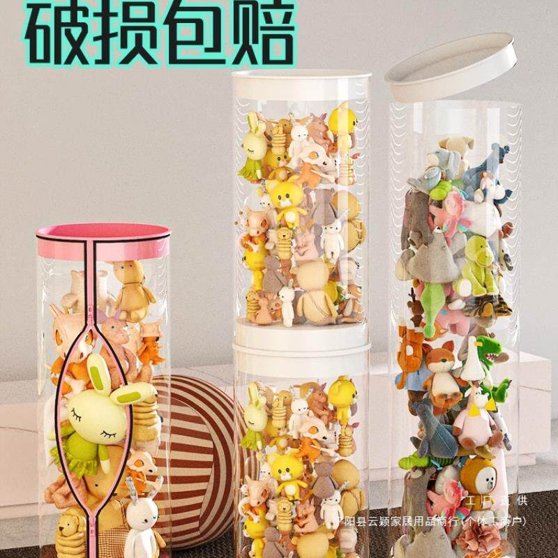 2025新款双拉链升级娃娃收纳桶毛绒玩具公仔儿童布玩偶透明收
