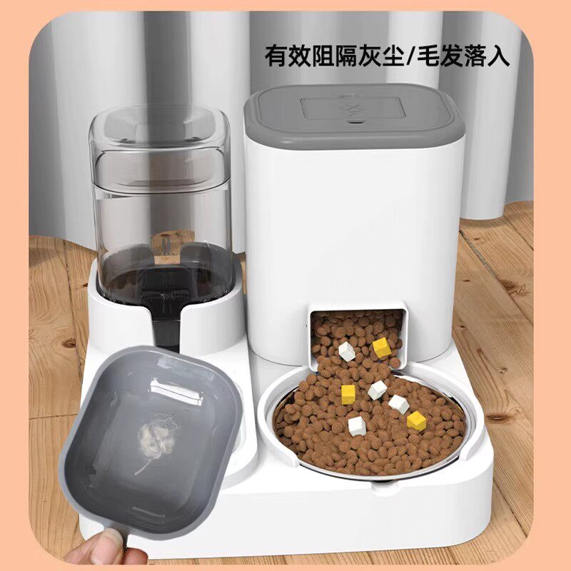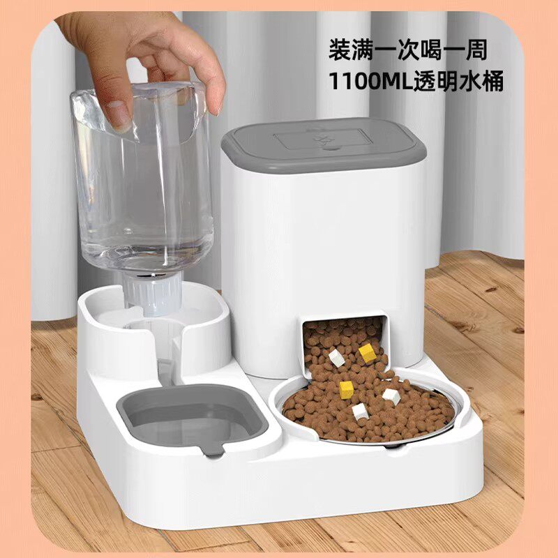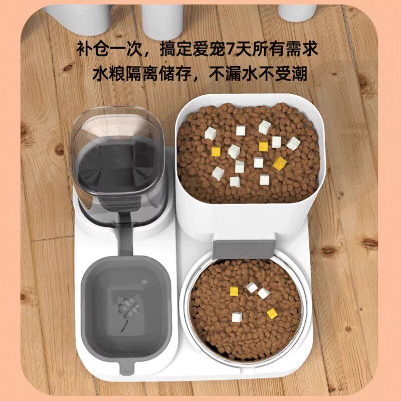 猫碗狗碗自动喂食器猫咪猫粮双碗饮水喂食一体猫食盆水碗宠物用品
