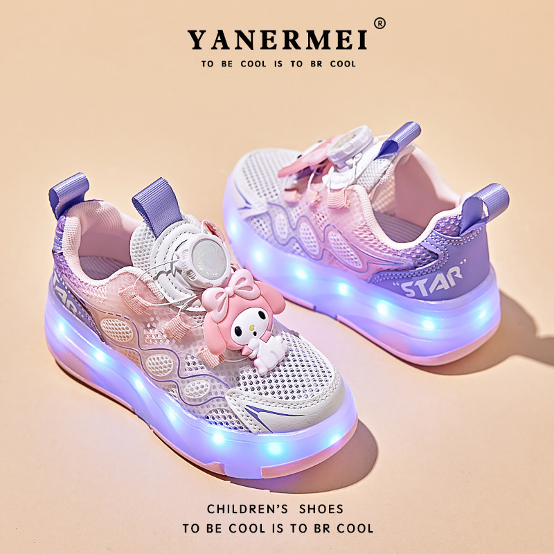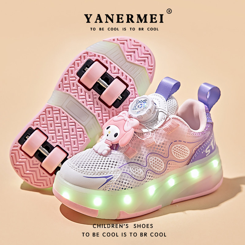库洛米女童暴走鞋春夏2026新款儿童公主滑轮鞋四轮隐形运动溜冰鞋
