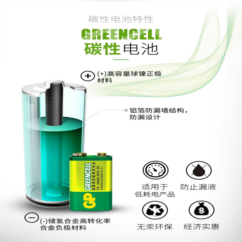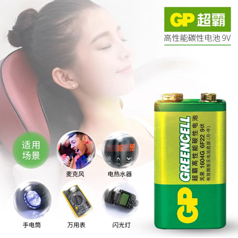 GP超霸9V电池九伏6f22方块碳性万能万用表报警器玩具遥控器9v叠层方形烟雾报警器话筒麦克风通用型