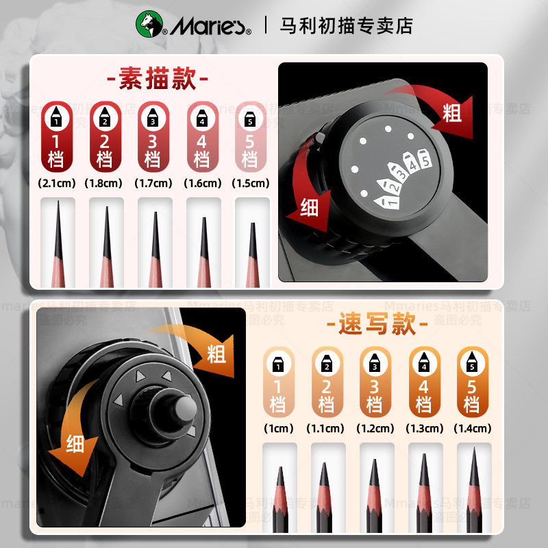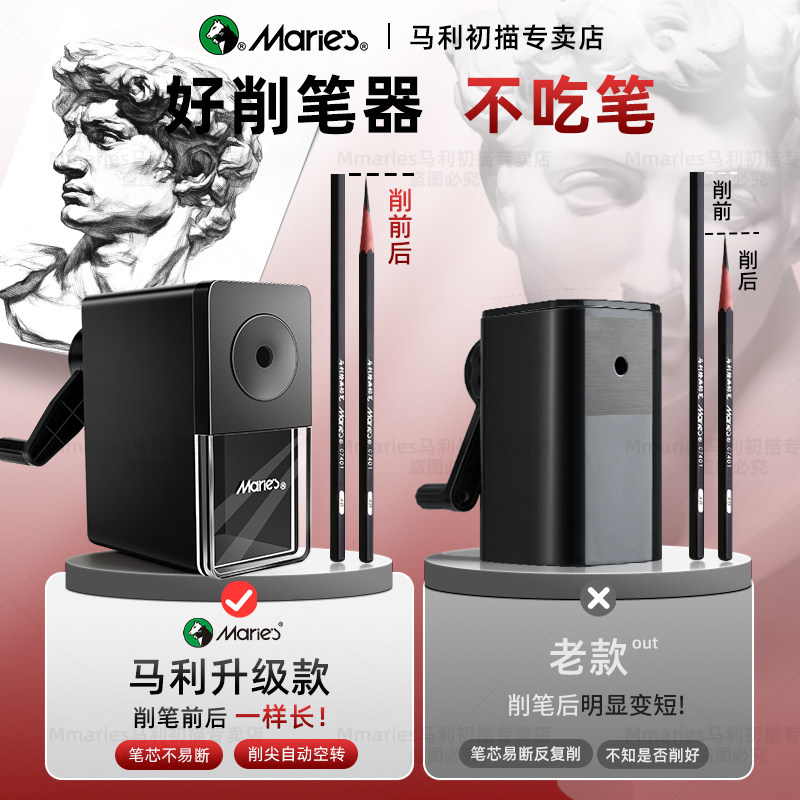 马利素描削笔器美术专用削笔器速写素描专用削笔器卷笔刀小学生专用便携小型刨笔机儿童铅笔手摇削笔刀削笔机