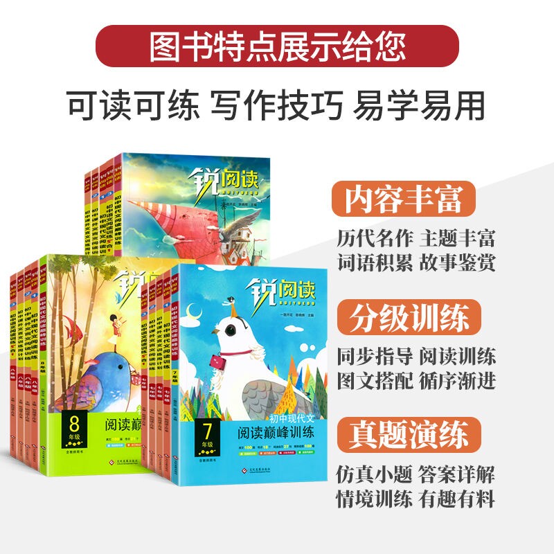 锐阅读初中语文阅读组合训练五合一七八九年级中考现代文100篇课外文言文周计划初一二三通用版模板专项练习册资料名著同步导读