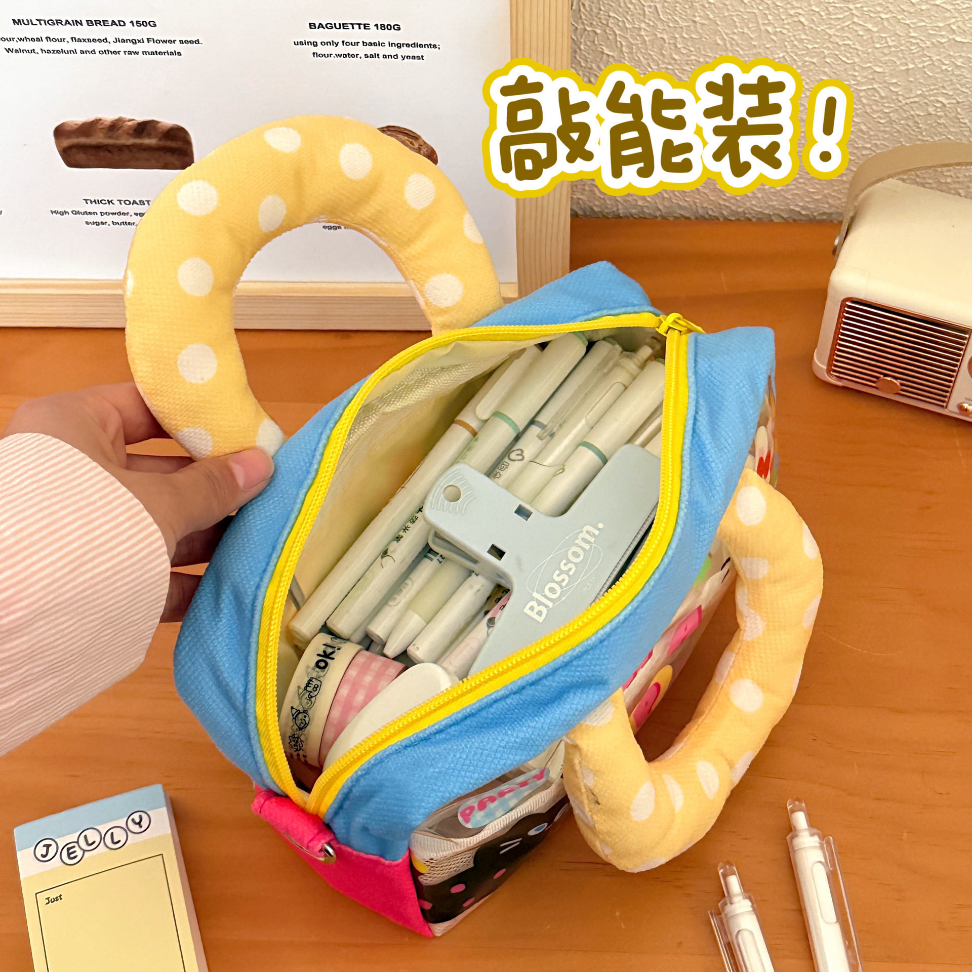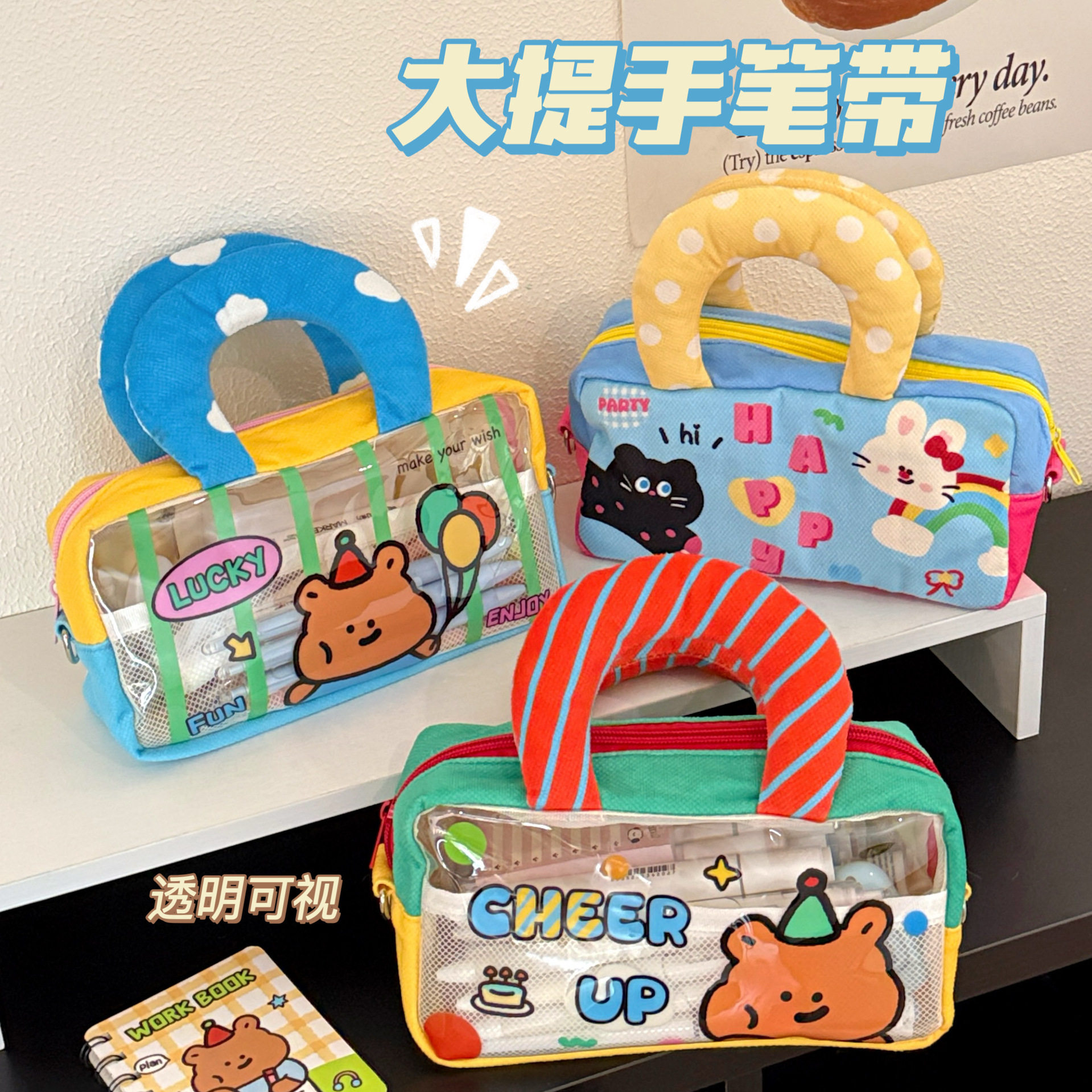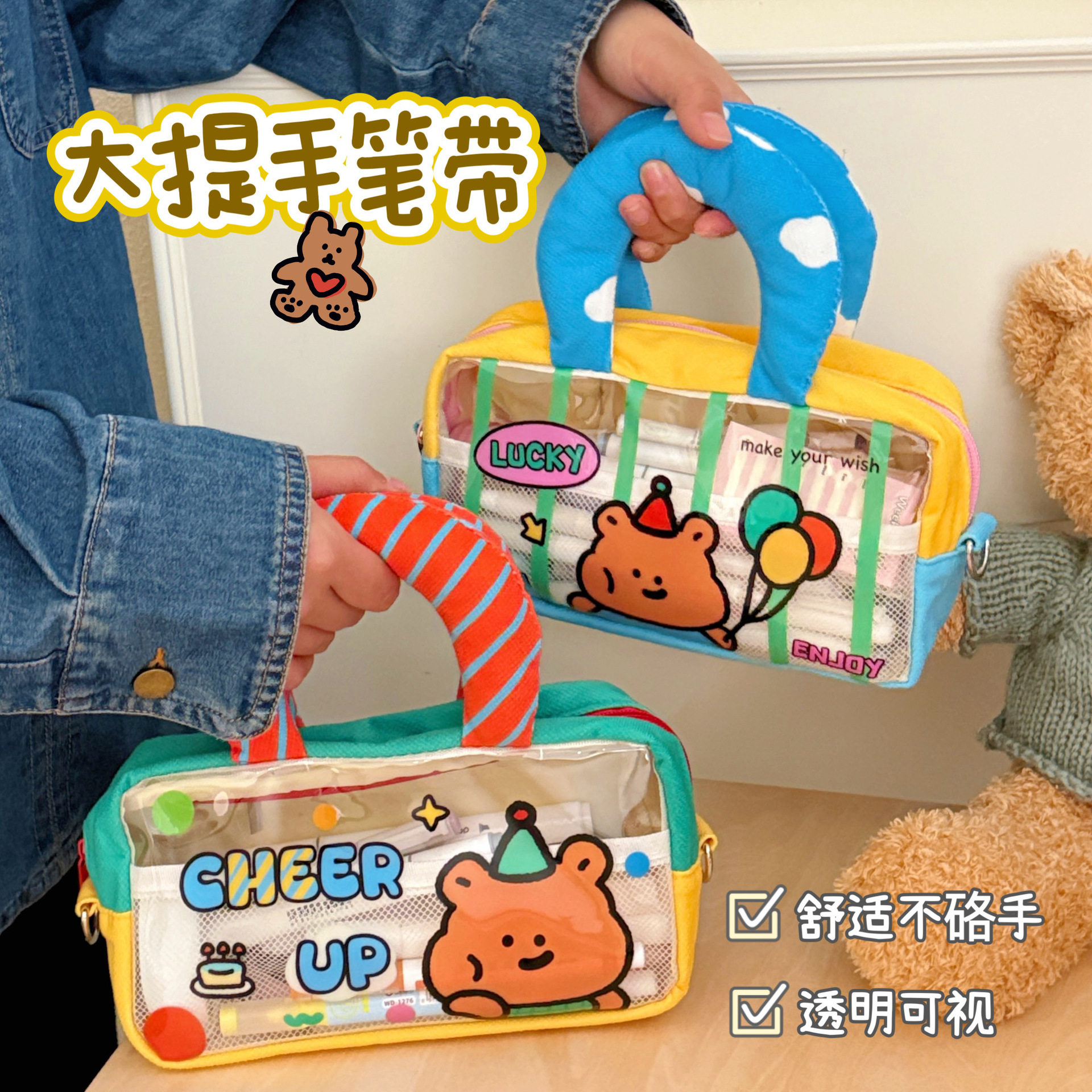 个性校园腾亿原创大容量可爱笔袋学生手提袋多功能化妆包收纳包便