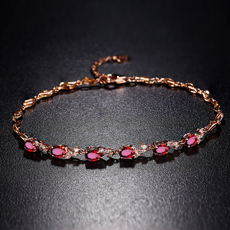蜜安琪珠宝 1.24克拉 红宝石手链 彩色宝石镶嵌18K金手饰 女彩宝