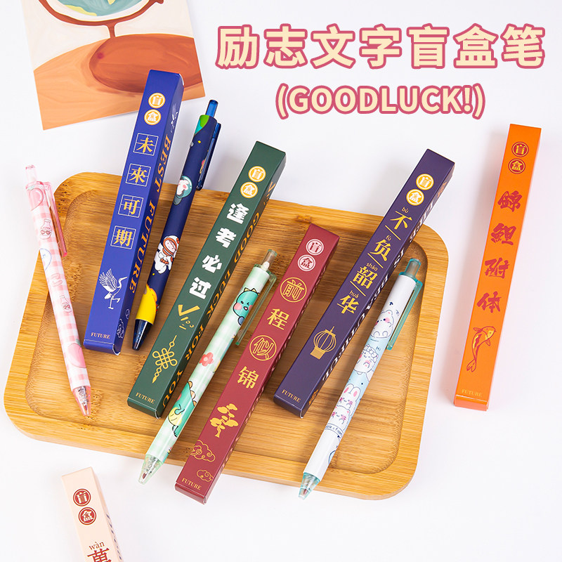 励志文字按动盲盒中性笔ins女孩高颜值学生考试签字黑水笔小礼品