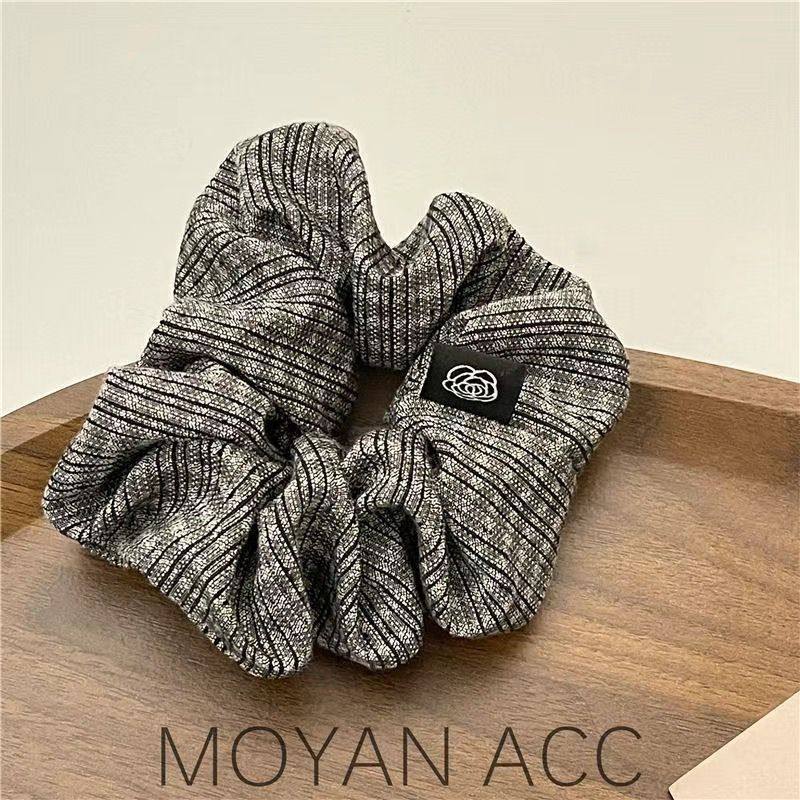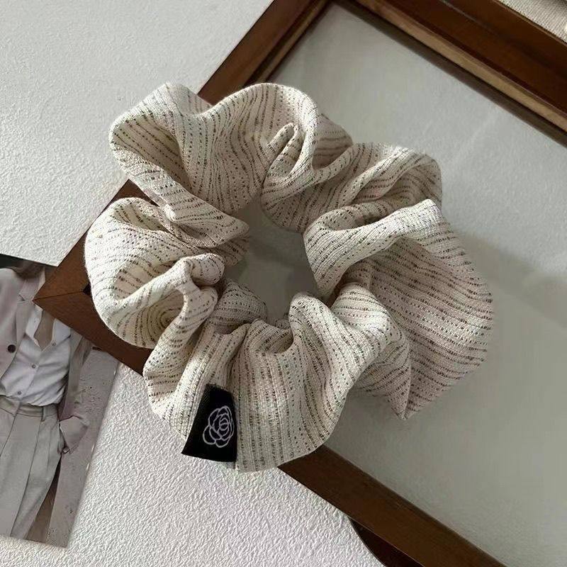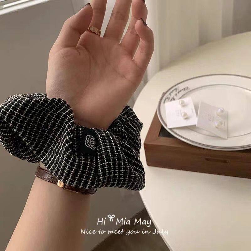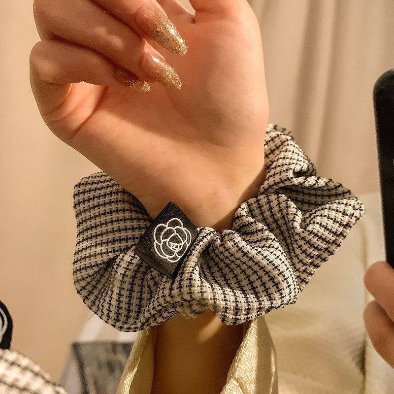 新款法式优雅气质大肠发圈复古格纹褶皱发绳韩版网红发饰女山茶花