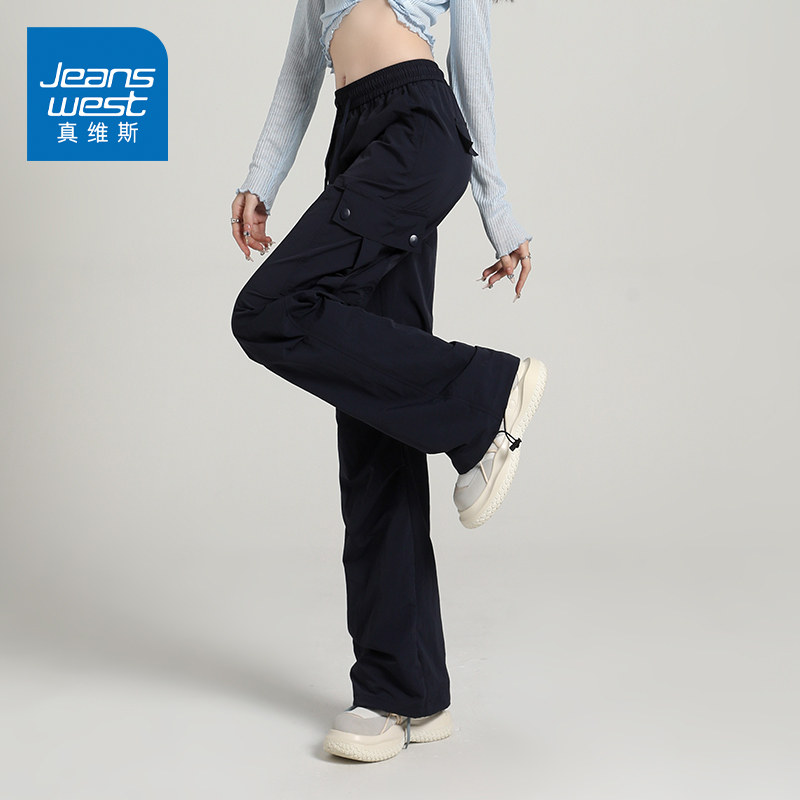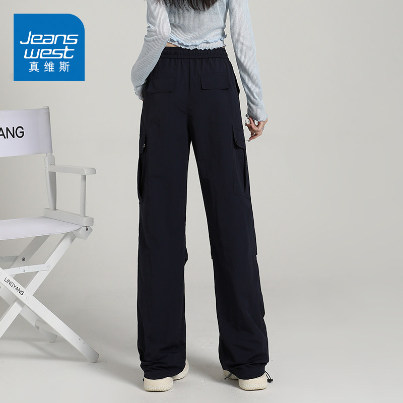 KZ真维斯春秋款抽绳工装女裤阔腿宽松直筒休闲长裤子女士高腰显瘦