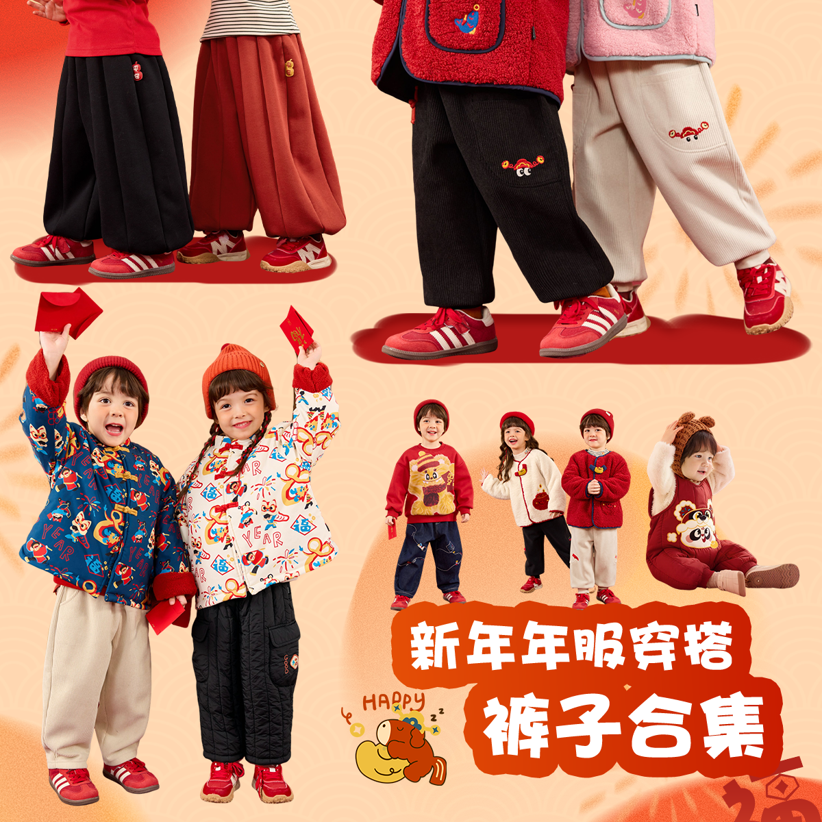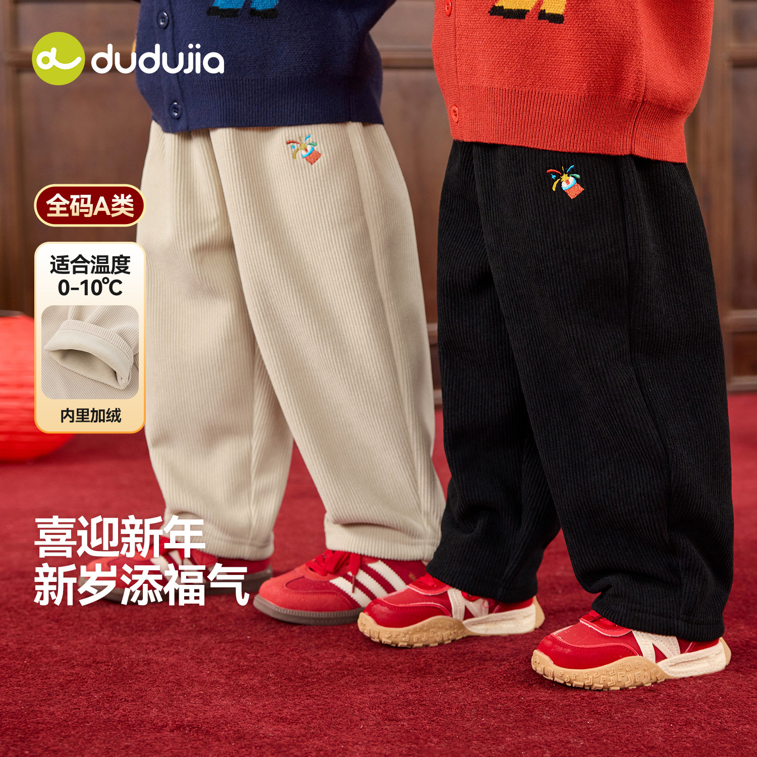 dudujia儿童裤子冬季唐装宝宝拜年男童年装长裤加绒女童新年衣服a