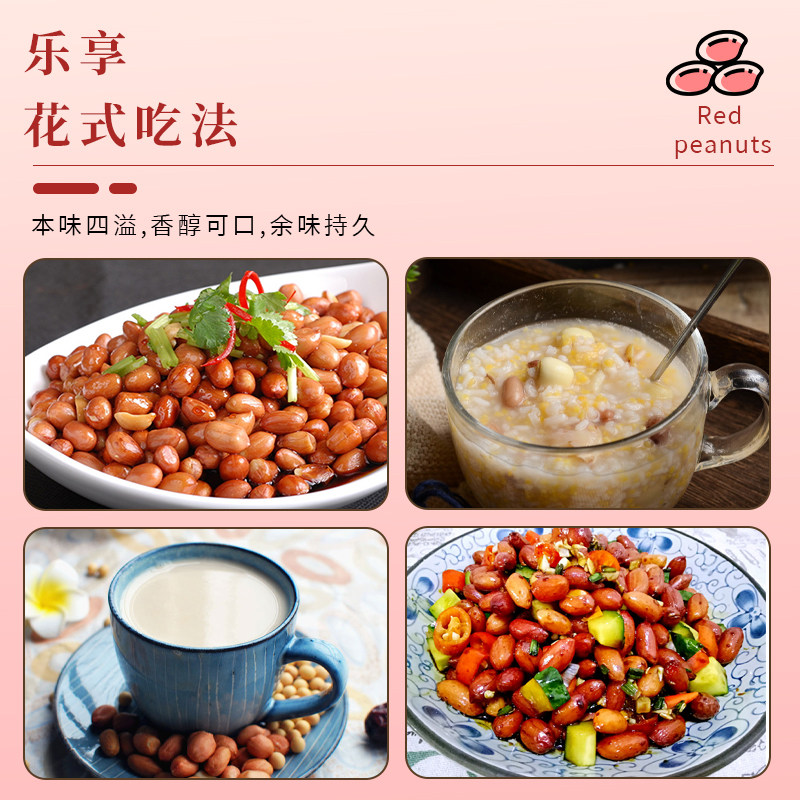 新鲜红皮带壳生花生四粒红花生米农家自种晒干货高产花生红皮花生