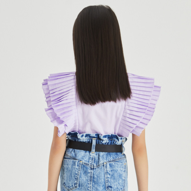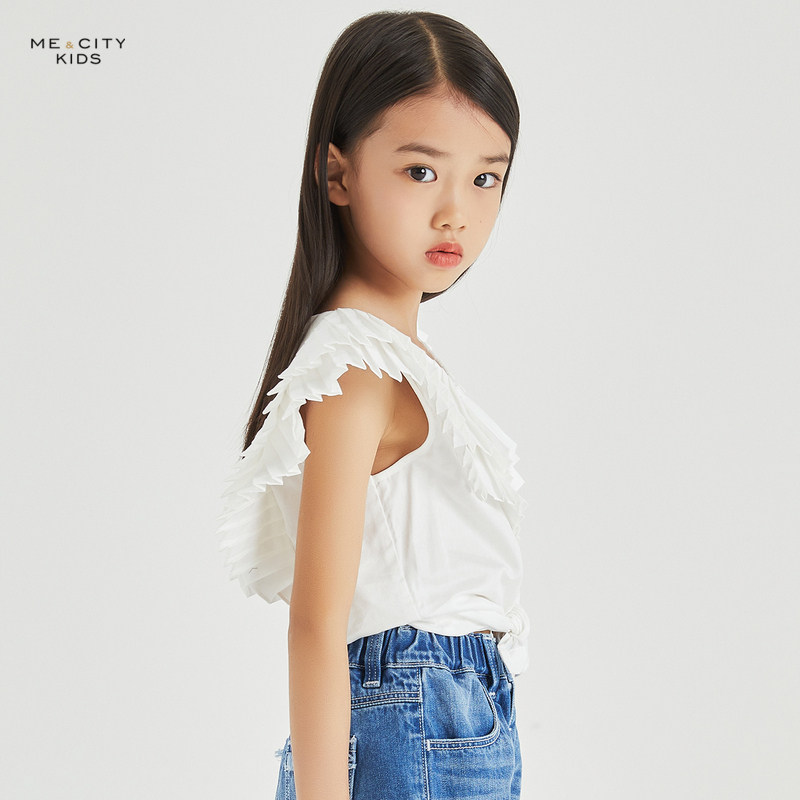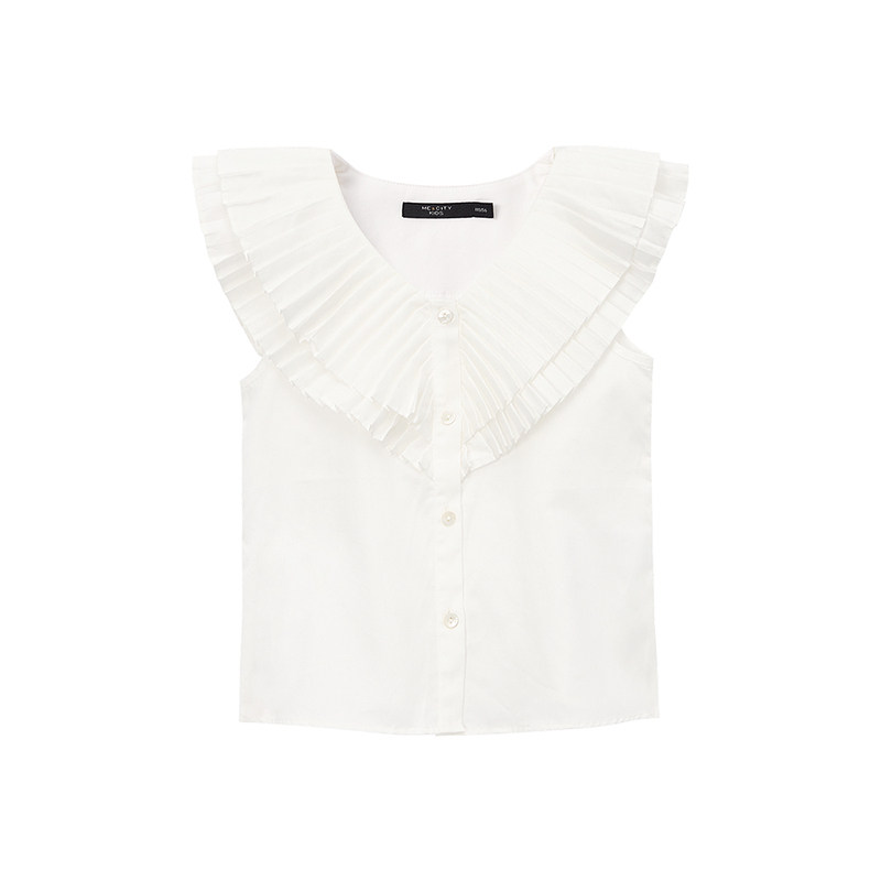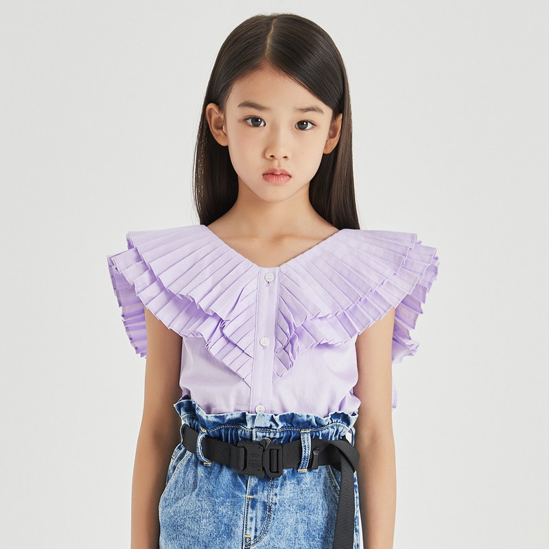 米喜迪童装短袖衬衫女童夏季百褶领甜美清新上衣时尚潮流舒适百搭