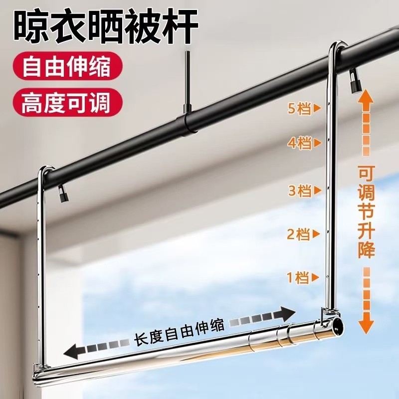 不锈钢可伸缩晾衣杆悬挂式家用阳台晾衣神器衣服被子架升降衣架