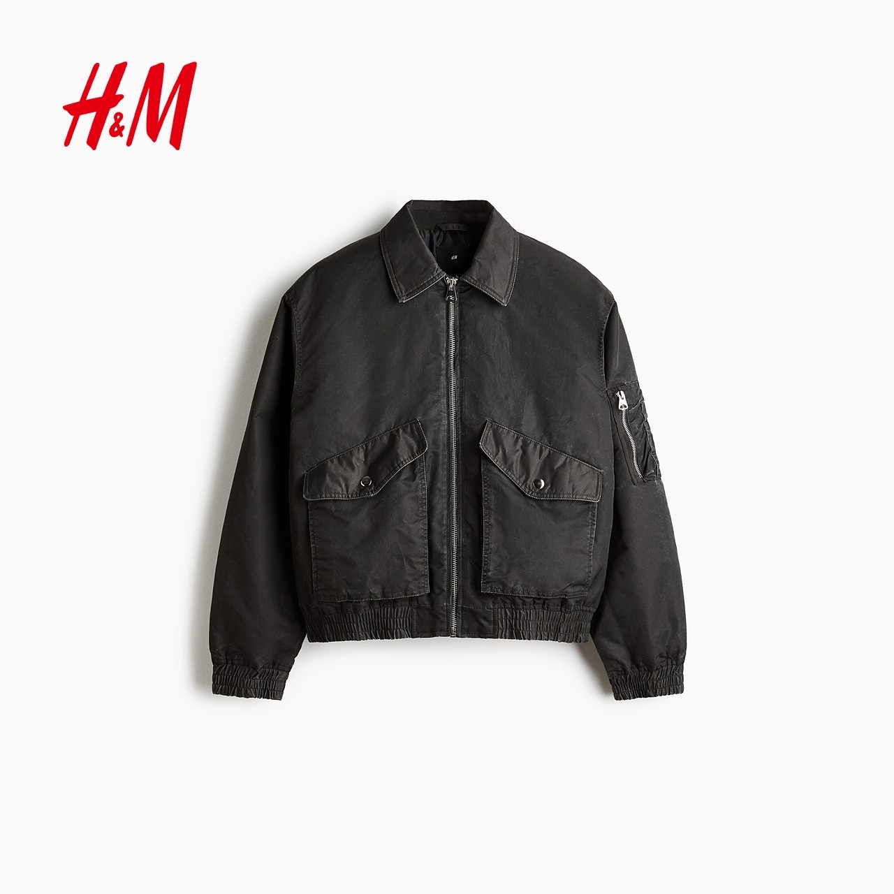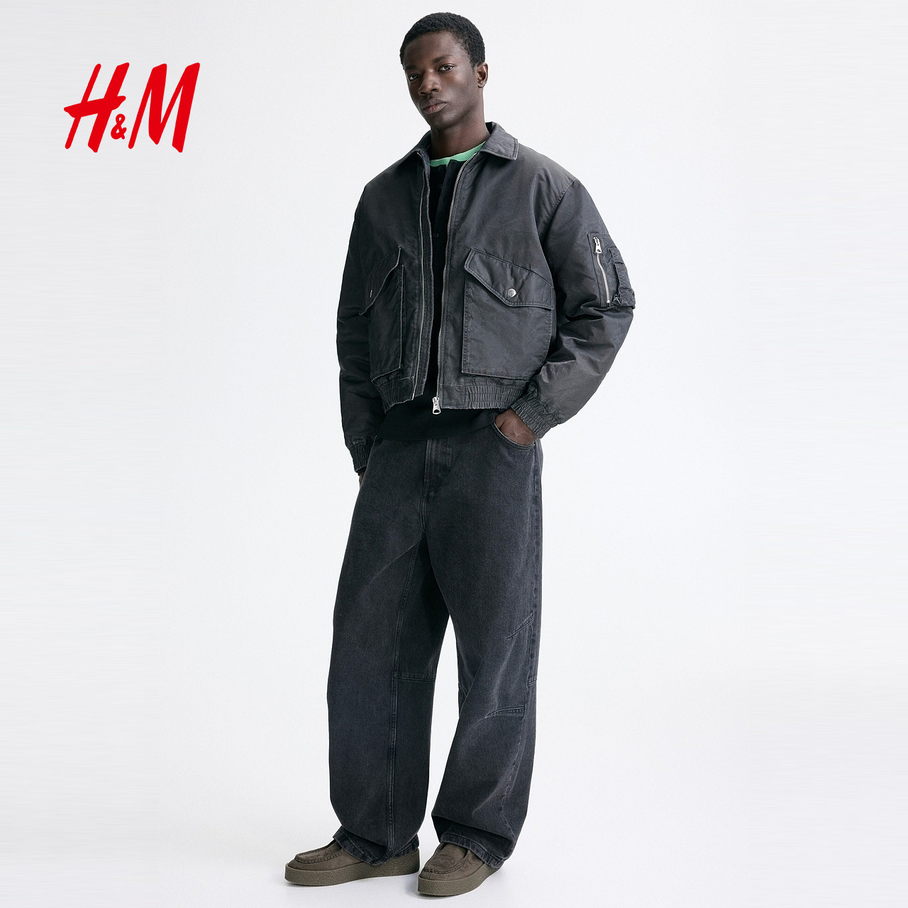 HM男装棉衣2026春季新款复古运动棉服夹棉保暖飞行员夹克1316590