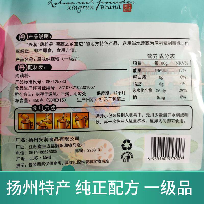 扬州宝应原味纯藕粉450g袋装一级品国标 0脂肪中老年孕妇营养早餐