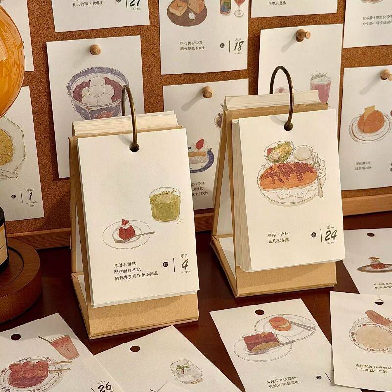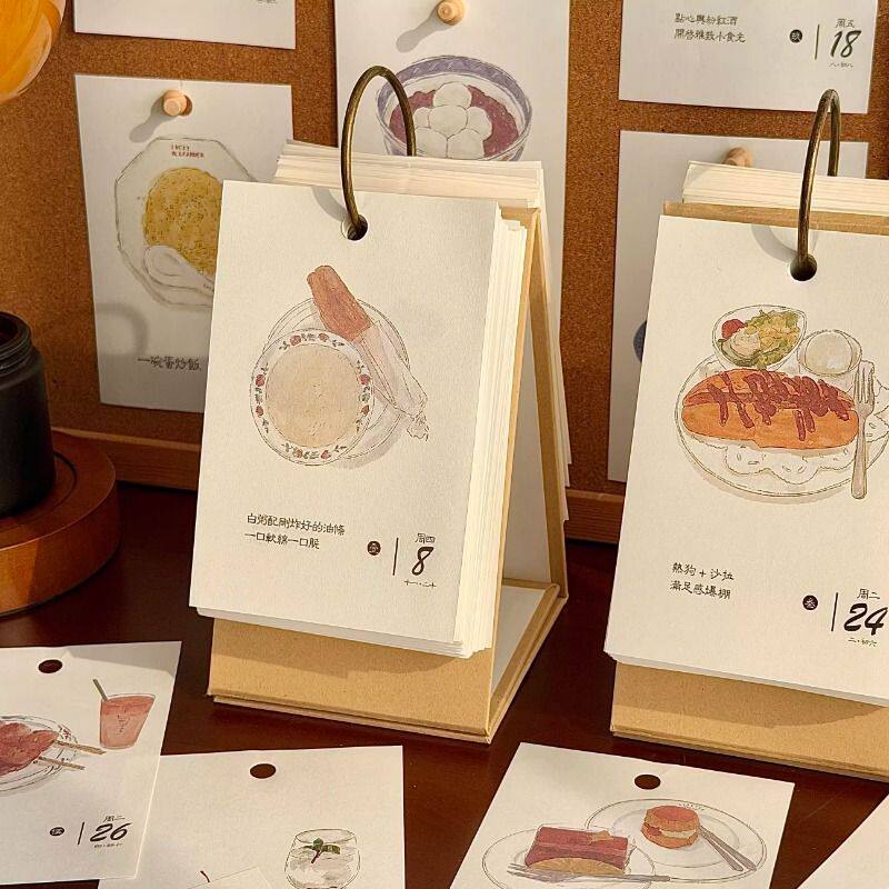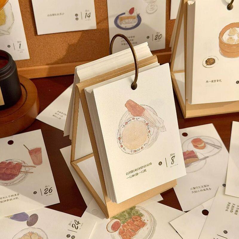 2026年新款创意治愈美食插画台历新年日历高颜值每日一页桌面摆件