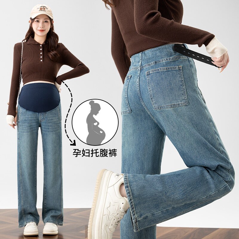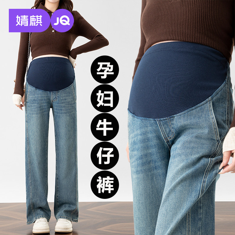 婧麒孕妇牛仔裤春装外穿2026新款直筒阔腿裤子孕期不勒肚子孕妇装