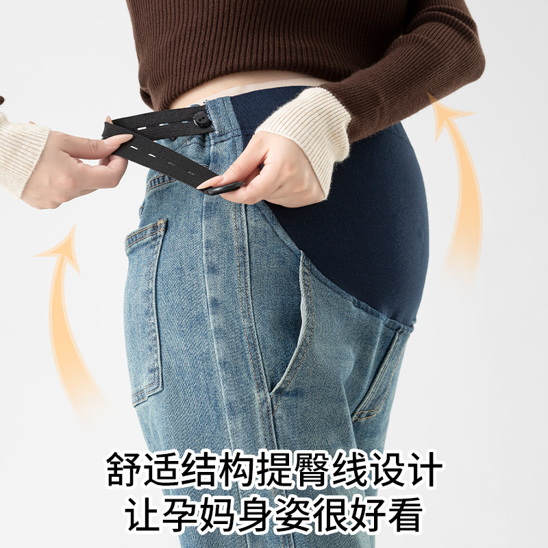 孕之优品弯刀裤孕妇牛仔裤秋加绒孕妇裤孕期不勒肚子宽松阔腿裤冬