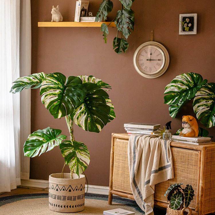花叶龟背竹假树白锦仿真植物盆栽大型仿生绿植客厅摆件轻奢风造景