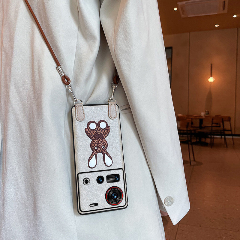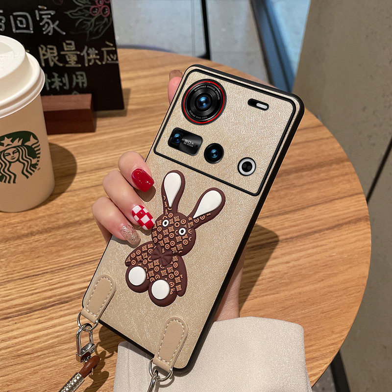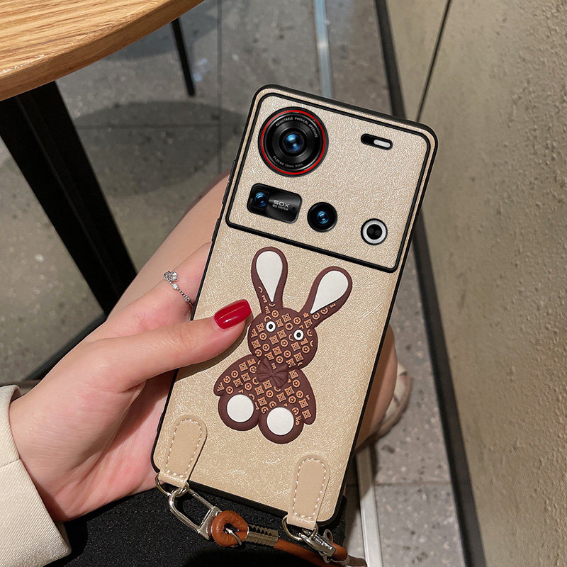 适用于努比亚Z70 Ultra手机壳复古潮牌立体花纹兔兔Nubia蚕丝纹卡通硬壳斜挎挂绳z70ultra外壳时尚防摔保护套