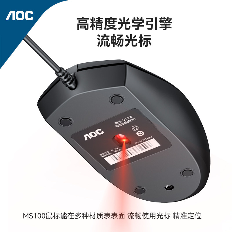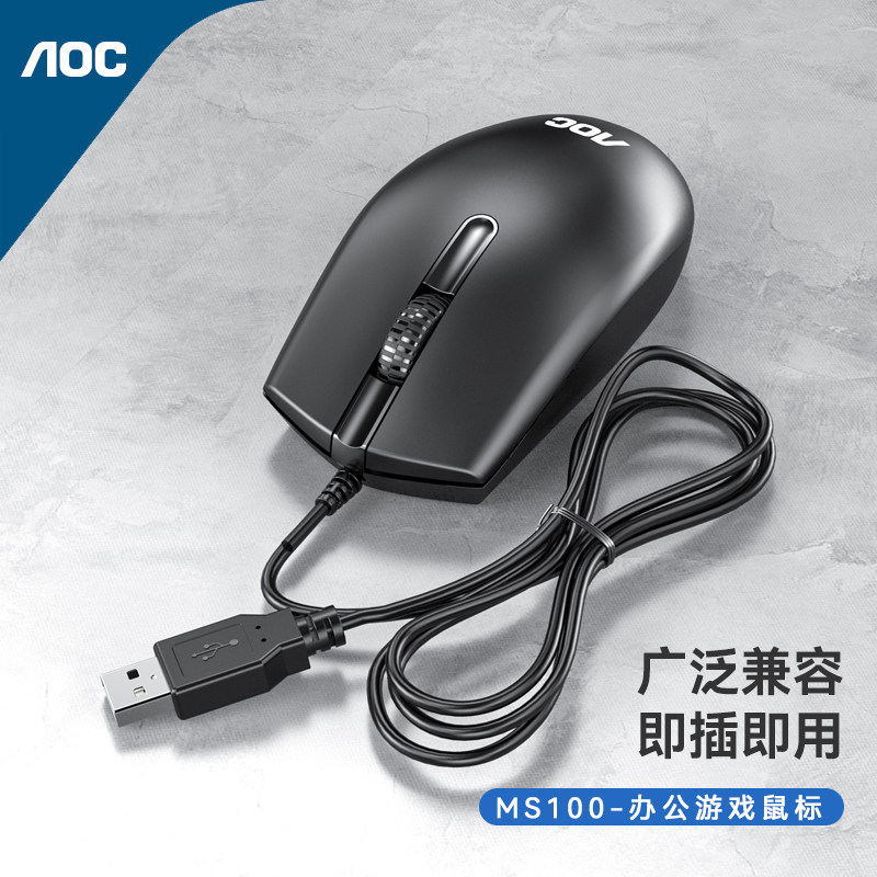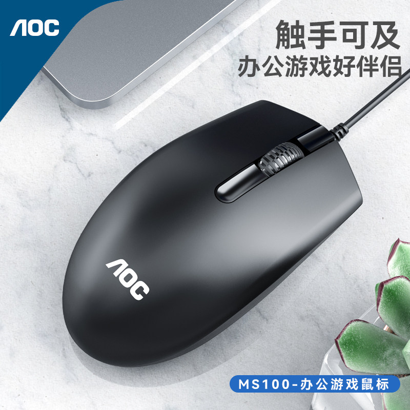 AOC有线静音鼠标笔记本台式电脑办公家用游戏电竞专用USB磨砂