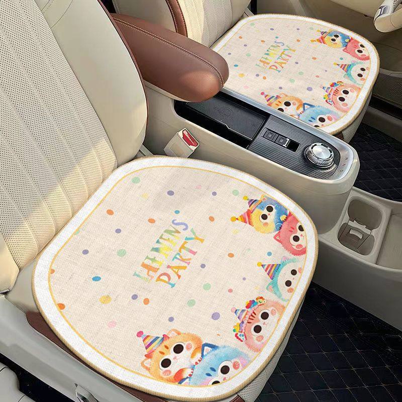 亚麻卡通汽车座垫四季通用通风透气坐垫单片车内车载屁垫装饰坐垫