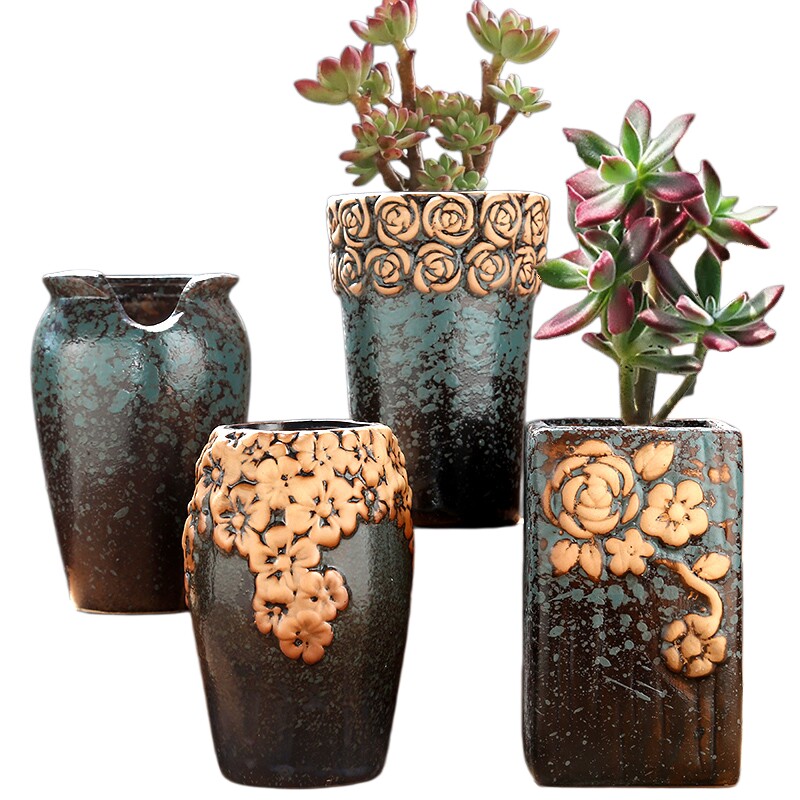 多肉花盆陶瓷老桩特价清仓创意多肉盆透气粗陶多肉植物花盆高桩