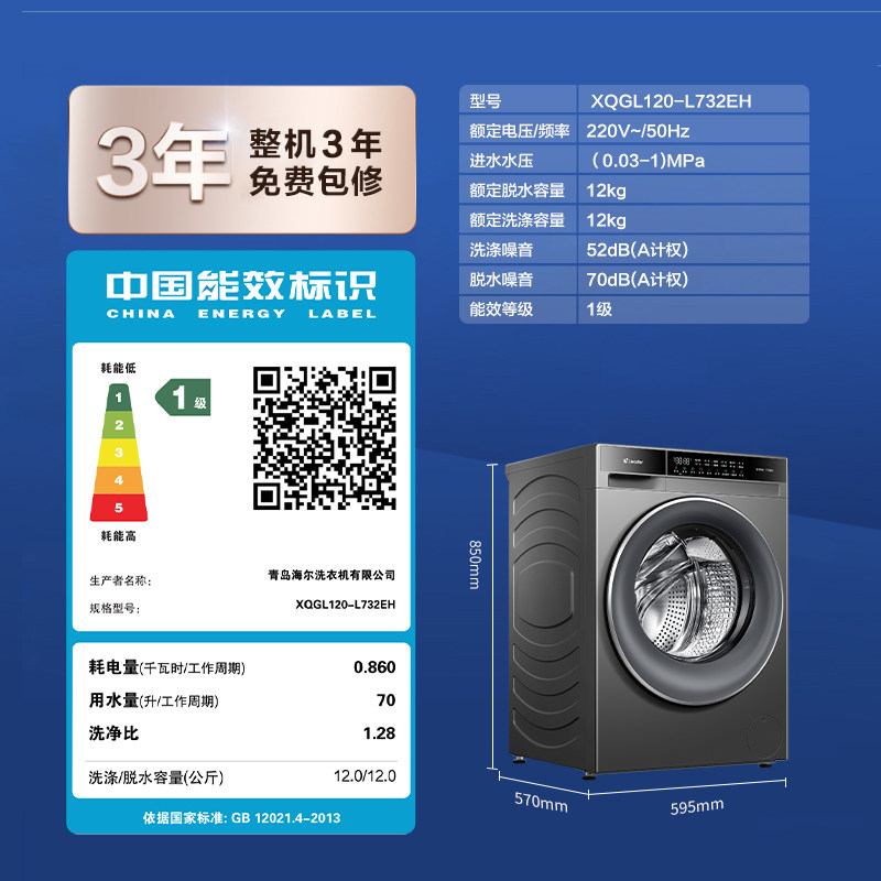 26年新品】海尔滚筒洗衣机11/12公斤大容量家用全自动洗烘一体58E