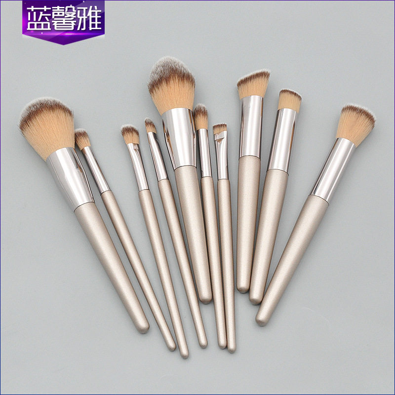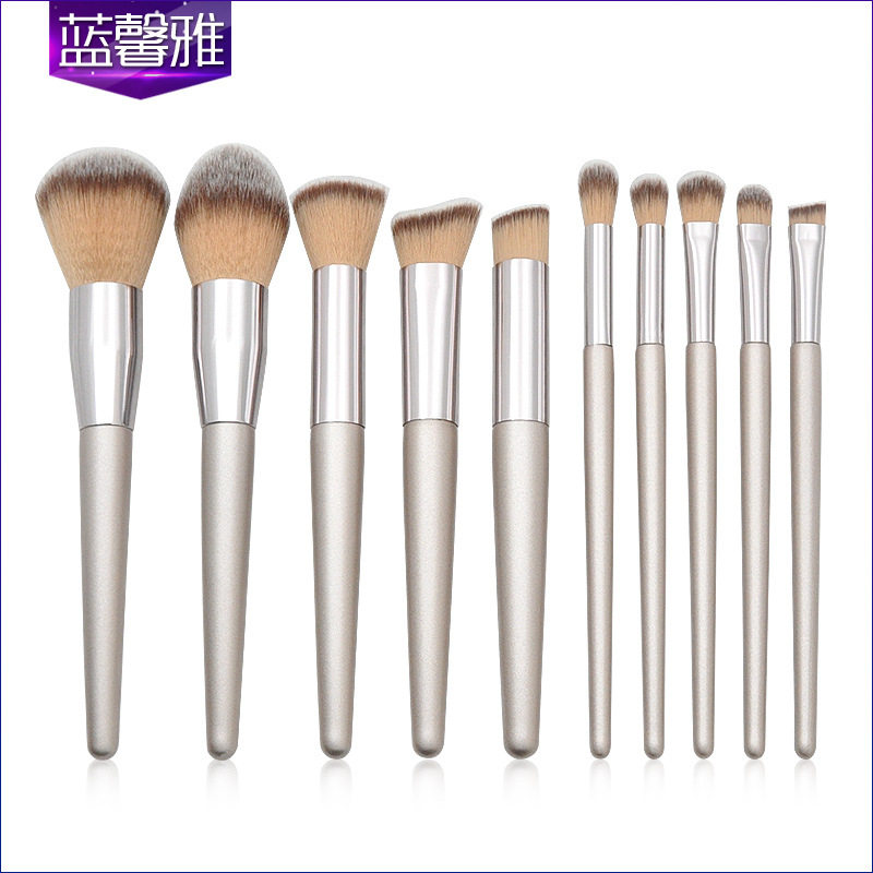新款 10支香槟金锥形木柄化妆刷套装 纤维毛散粉眼部美妆彩妆工具
