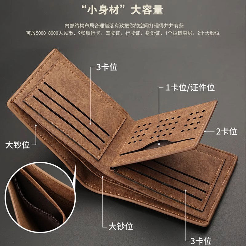 新款男式短款钱包驾驶证内拉链卡包青少年时尚休闲大容量好物证件