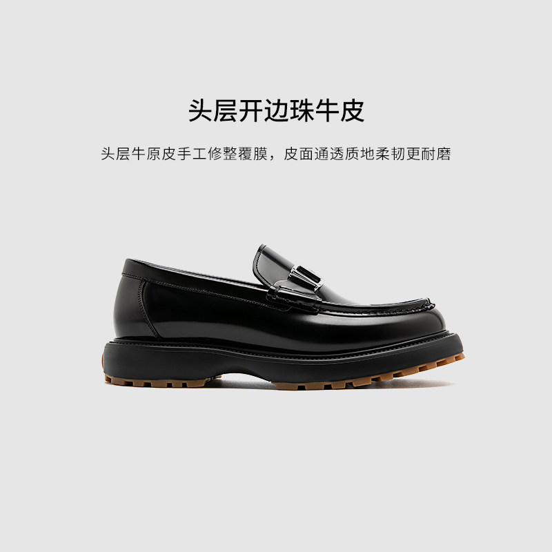 【轻量化增高】chioryn青润乐福鞋男士小牛皮厚底皮鞋休闲豆豆鞋