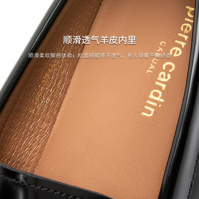 Pierre Cardin/皮尔卡丹25男鞋饰扣休闲乐福鞋轻底真皮皮鞋一脚蹬